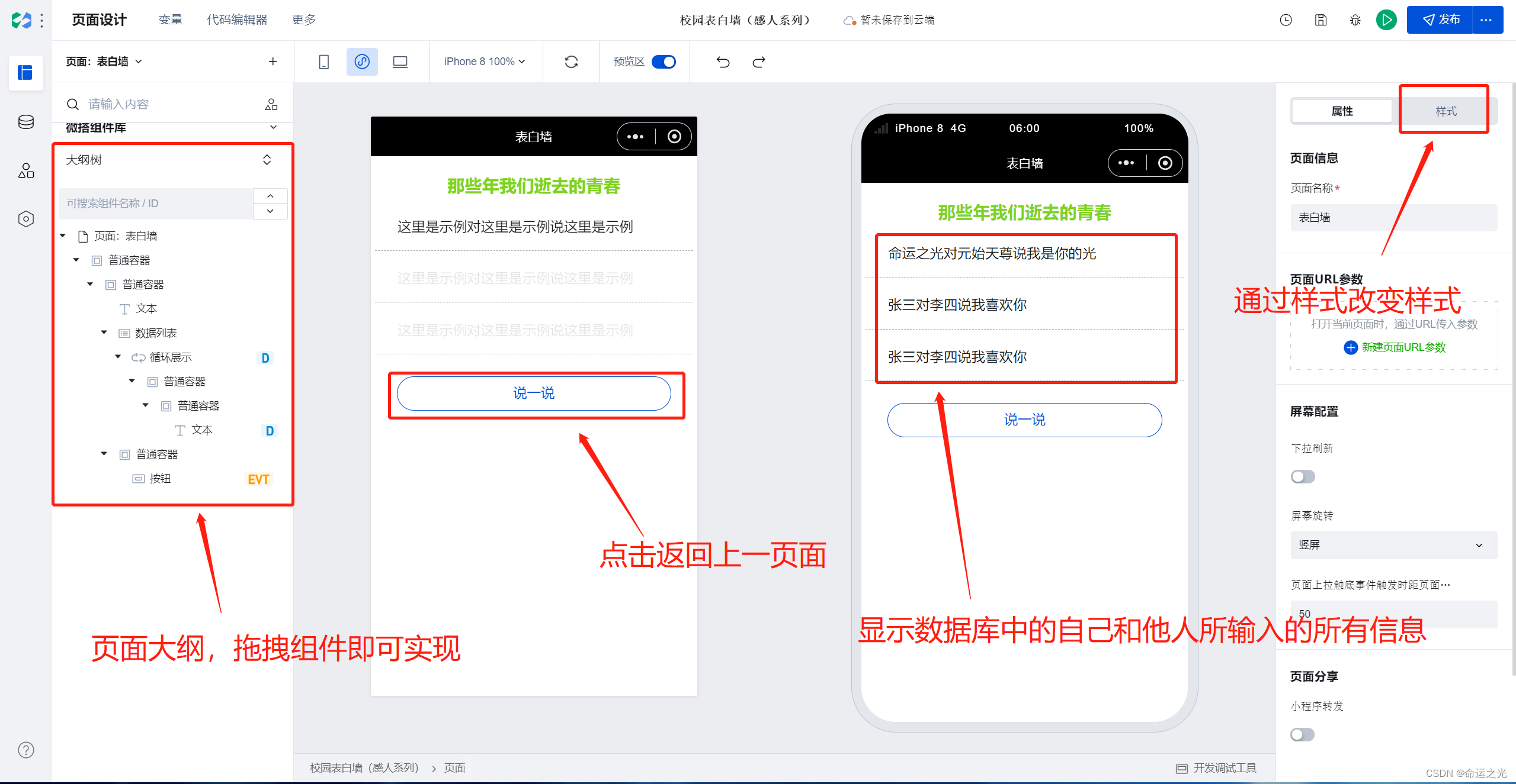 本文为了初学者能更快了解微搭技术,所以会将功能简化,只做到发布表白和查看表白的功能
