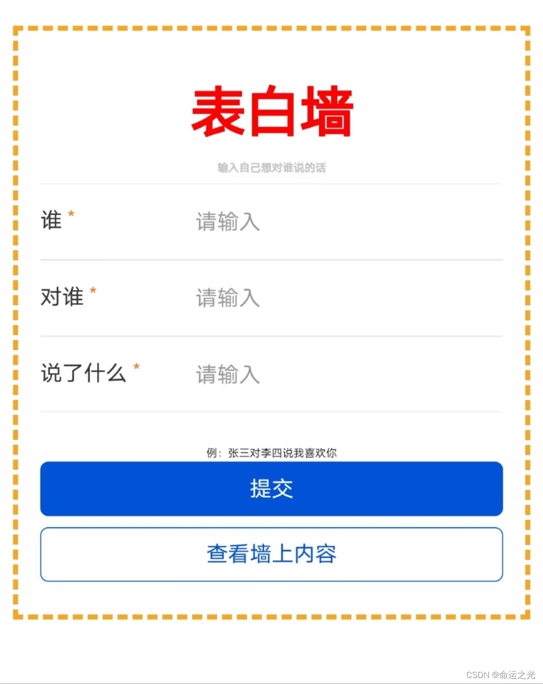 2. 回应表白:用户可以在小程序上匿名回应别人的表白,需要输入自己的信息以及回应内容。