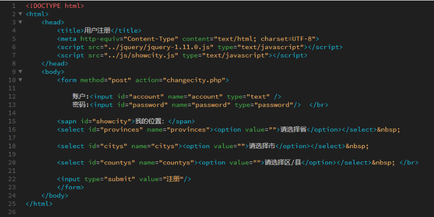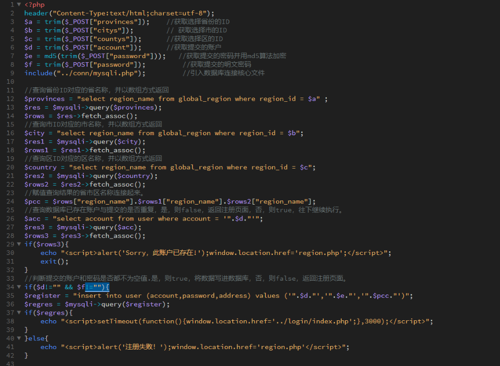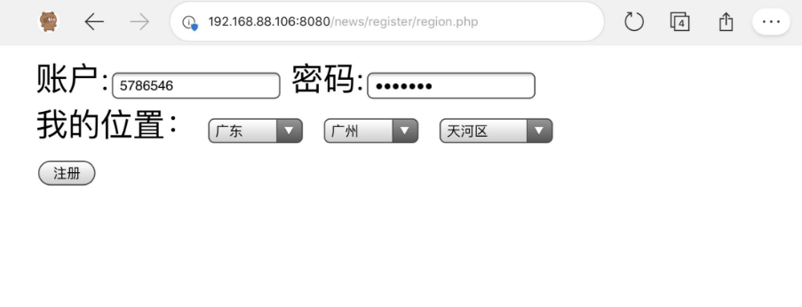 到此,本实例考虑到演示简单化,选取账户,密码还有省市区信息作为实验验证。当然,实际的用户注册信息远不止这些,欢迎各位加以补充和完善。