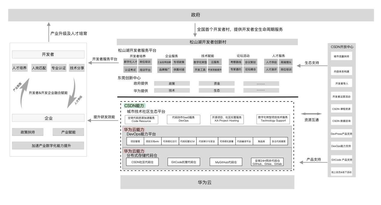 • CSDN与华为云基于城市社区平台提供自身专业服务能力,实现与社区平台账号互通,围绕服务开发者为核心构建城市社区生态。