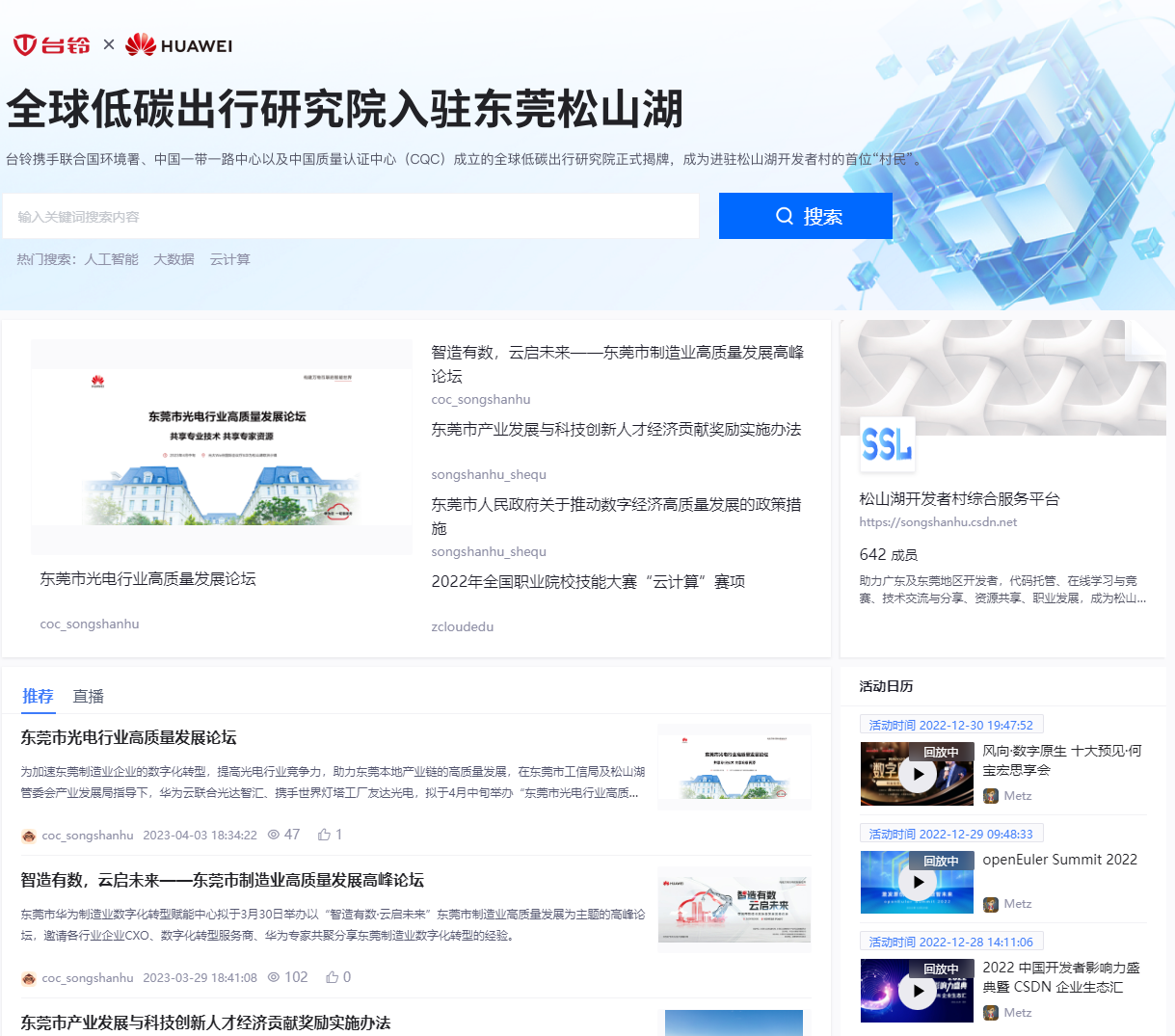 当时正处于疫情解控期间,冒着疫情“必然”感染的风险,在东莞松山湖小镇, CSDN高级副总裁于邦旭带领团队与华为云赋能云团队一拍即合,基于华为云的生态中心公共服务平台现有能力,叠加CSDN的流量优势和To C服务能力,就共同打造“城市开发者综合服务平台”达成了合作意向,经过持续的方案交流碰撞,对如何服务好区域开发者,逐步有了清晰的答案。