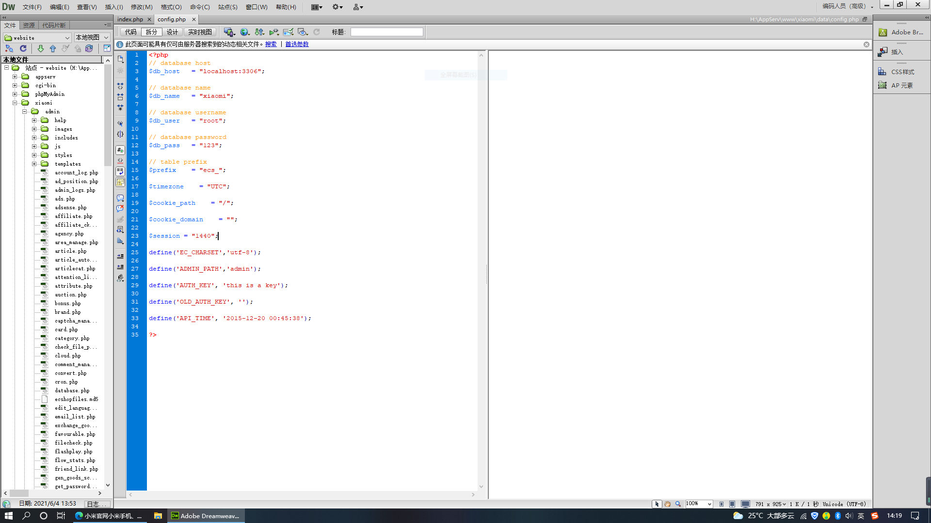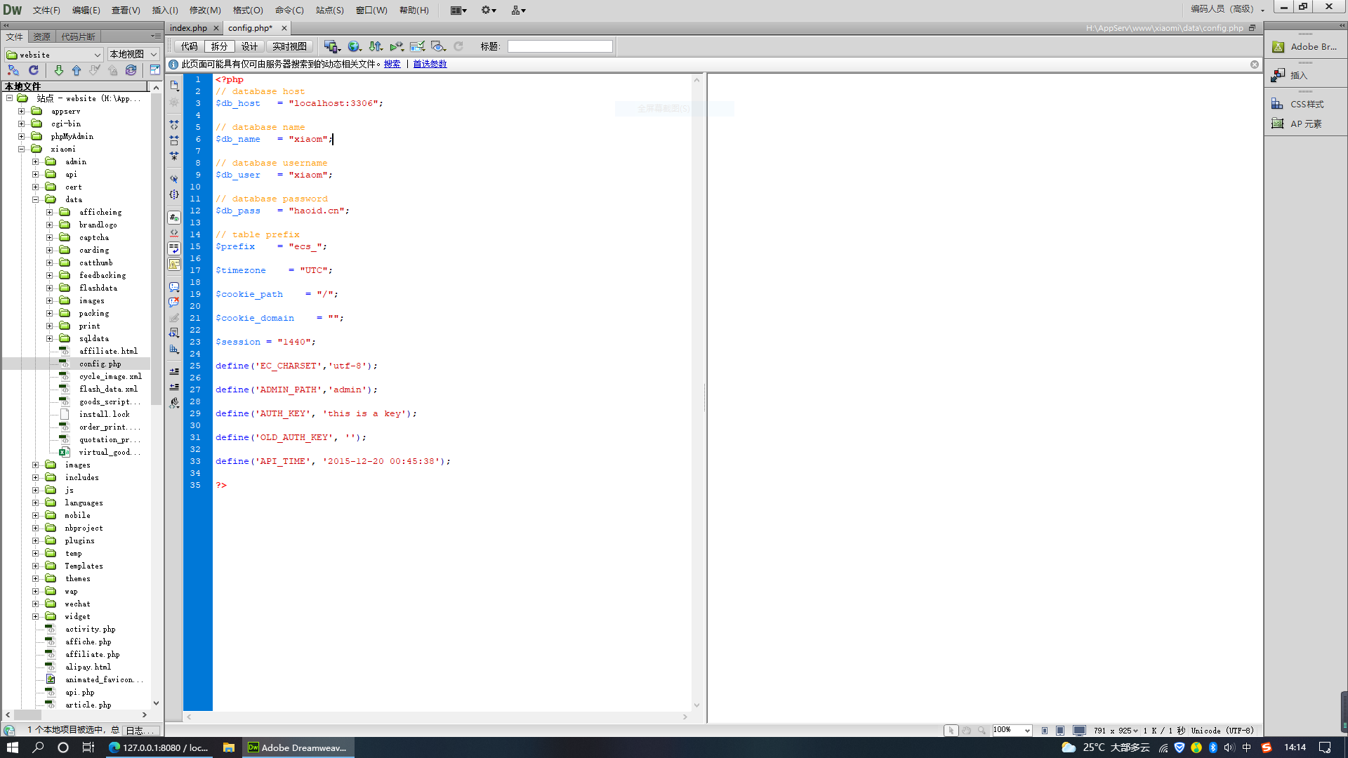 7.找到项目目录下管控数据库用户、密码、数据库名、字符编码等信息的文件config.php。