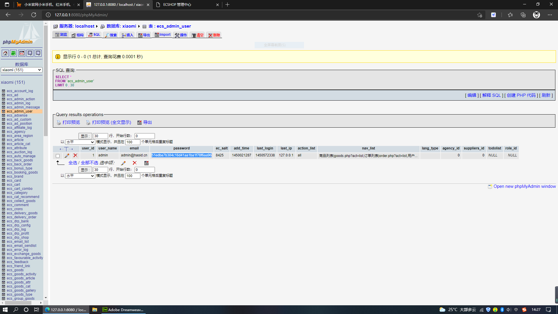 开发者日记 - 项目调试和加密密码巧妙破解(基于ecshop小米商城项目解说)