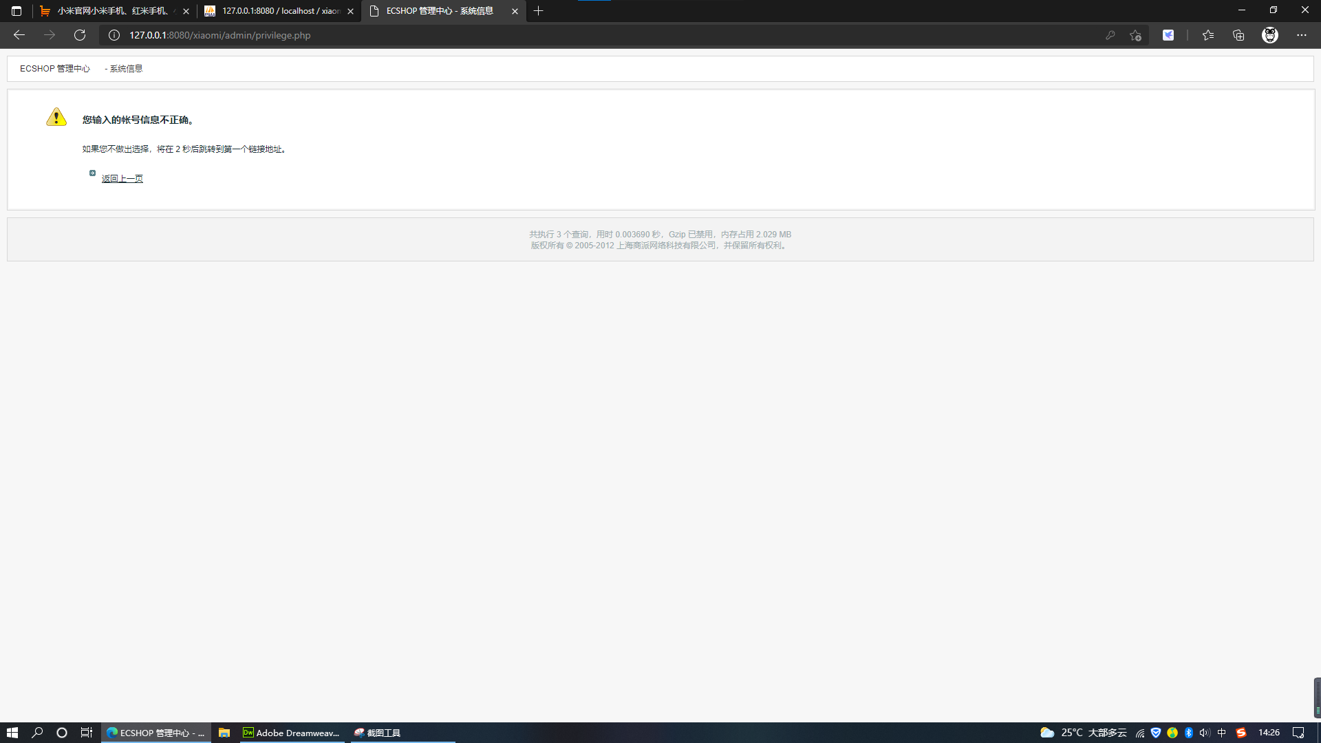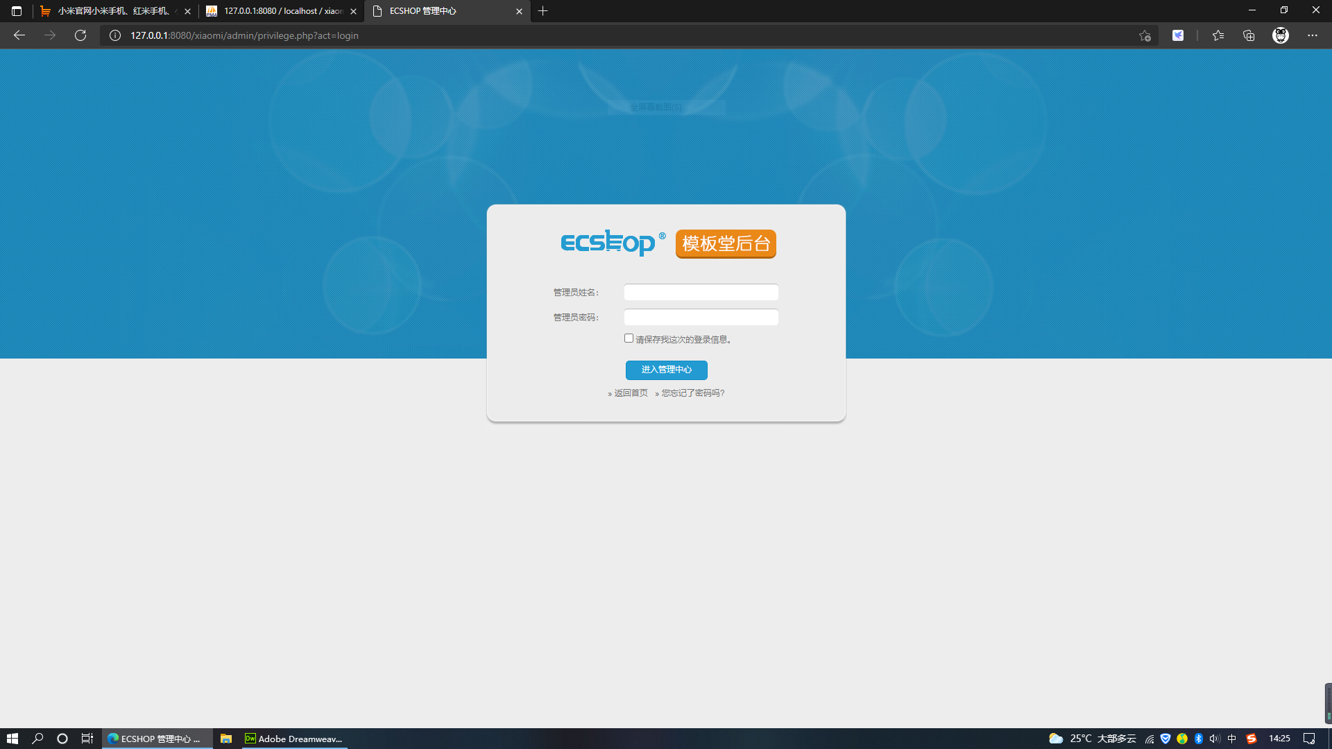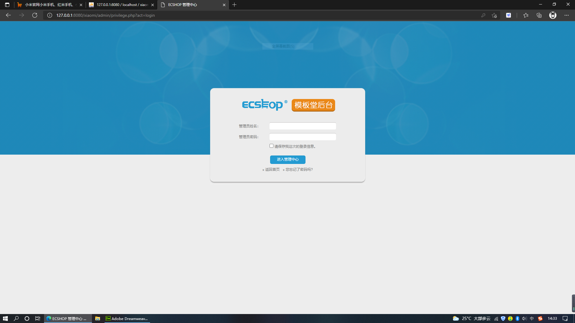 14.到访问商城后台管理页面,需要管理员账号和密码,这些也是未知的。我们这时不妨模拟一下ctf黑客攻防大赛,看能否通过自己微薄的力量拿下flag。