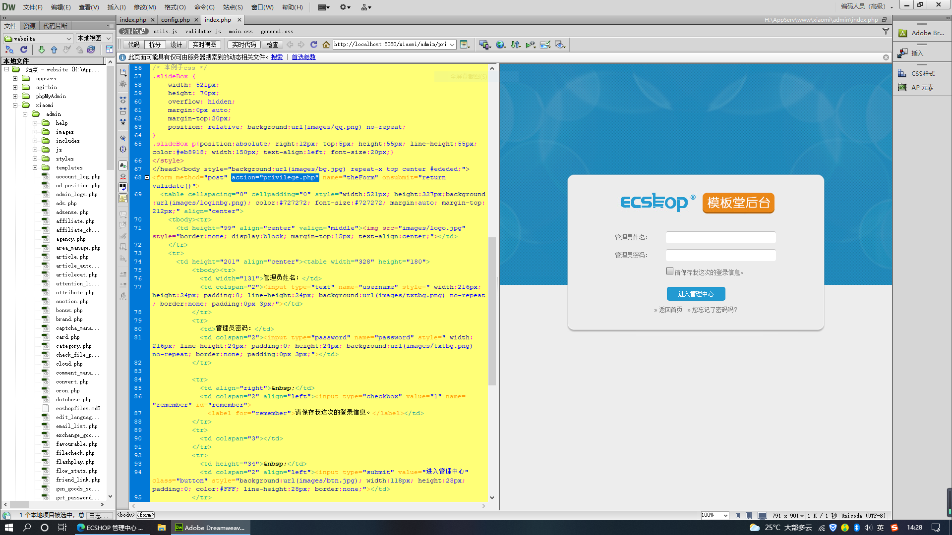 16.我们在Dreamweaver网页编辑器利用代码跟踪,定位到后台页面密码输入所在的form表单提交指向操作文件。