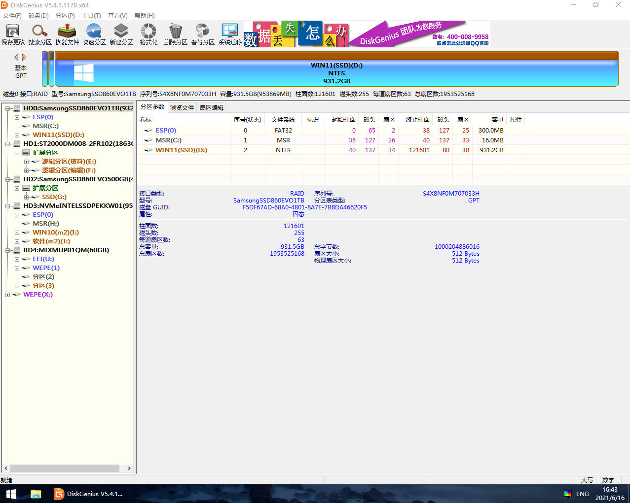 1.删除其中一个硬盘的所有分区,选择快速分区,硬盘格式选择GUID。