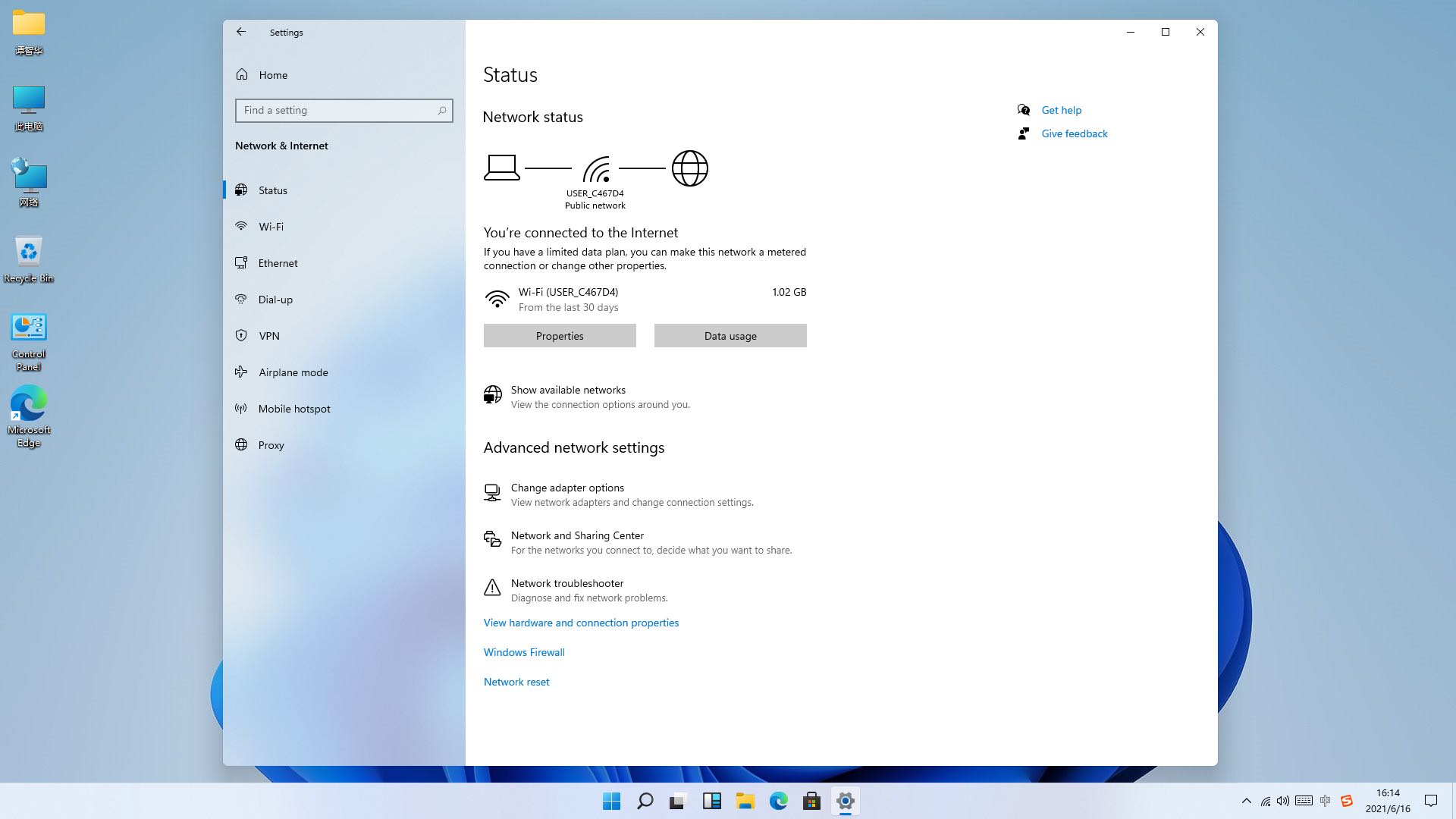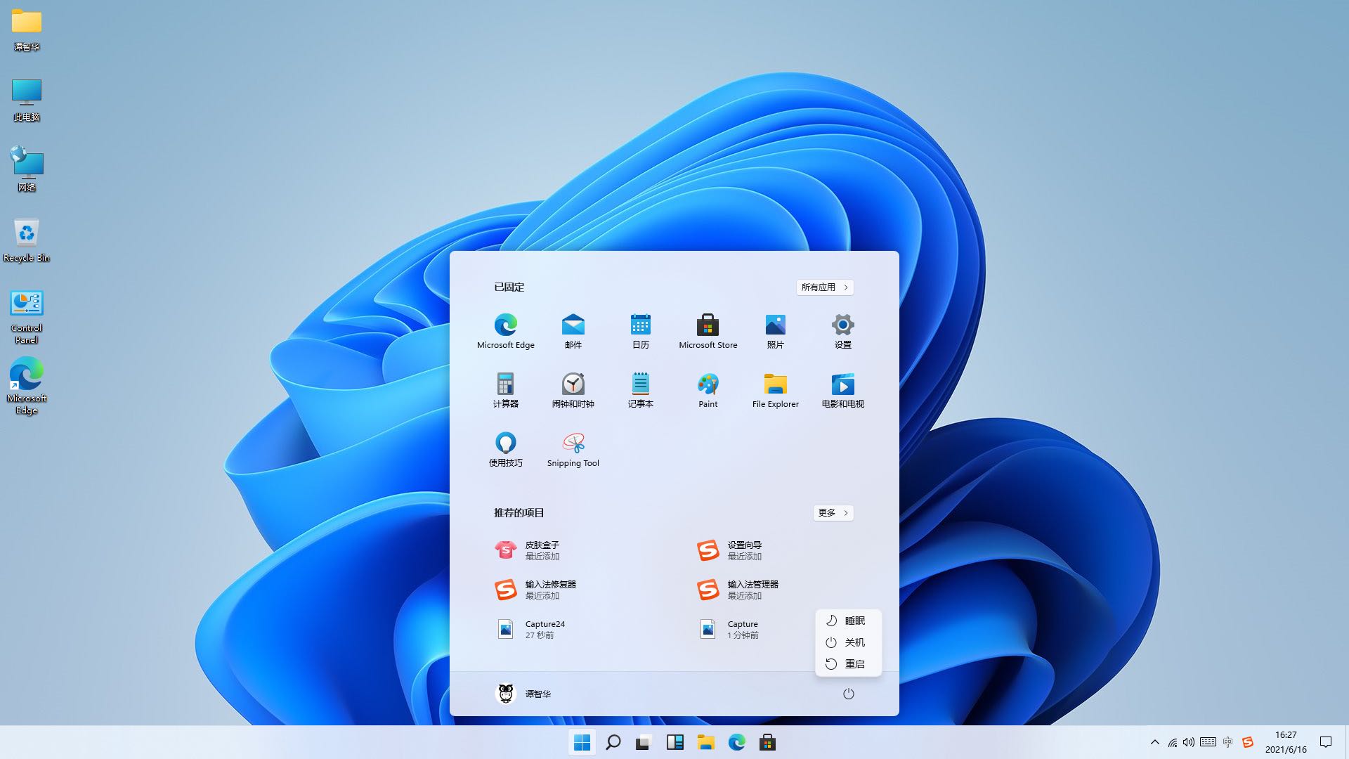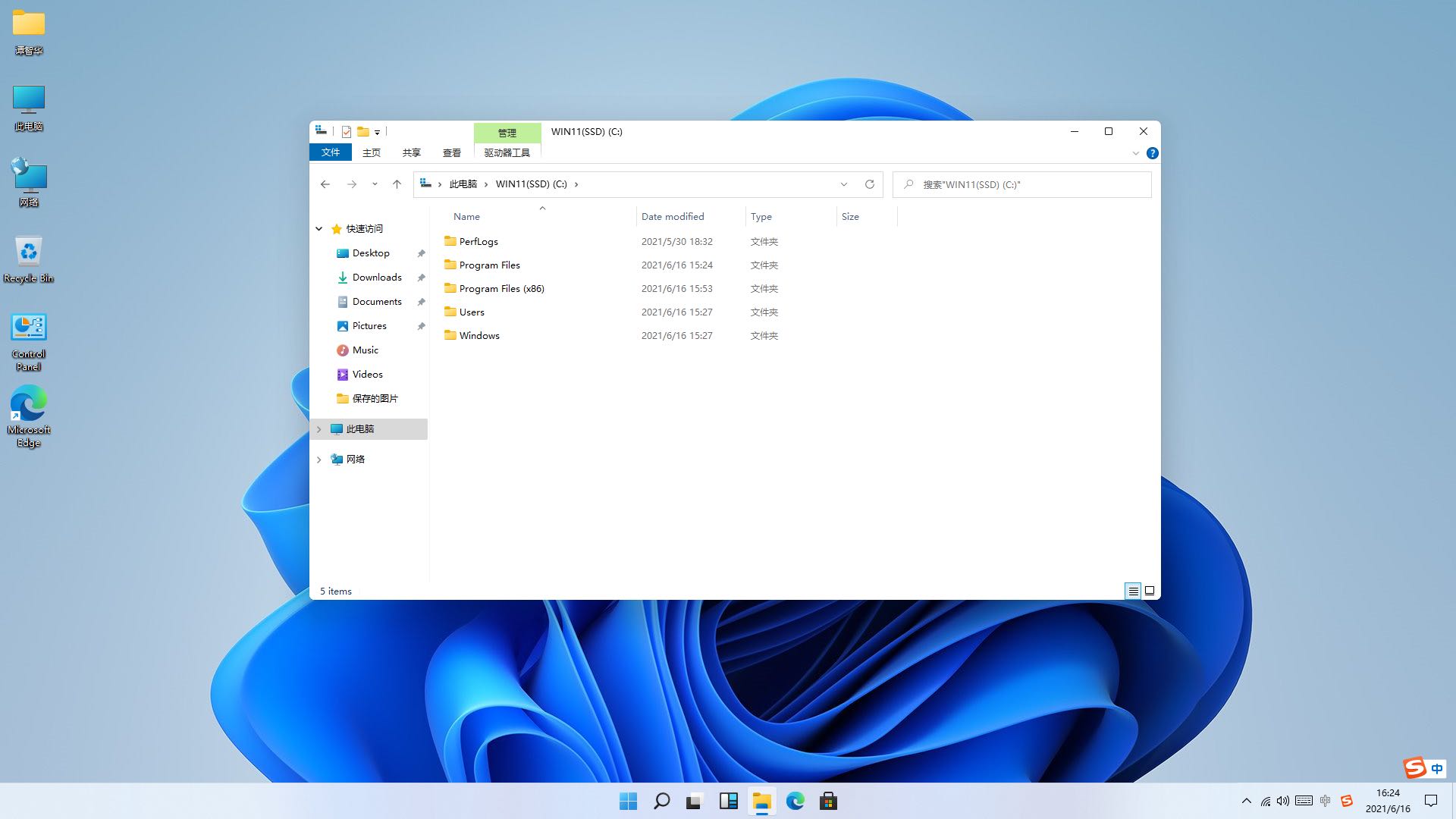 4.完成用户初始化设置,进入新系统。可以看出下一代Windows操作系统将会命名为Windows11。