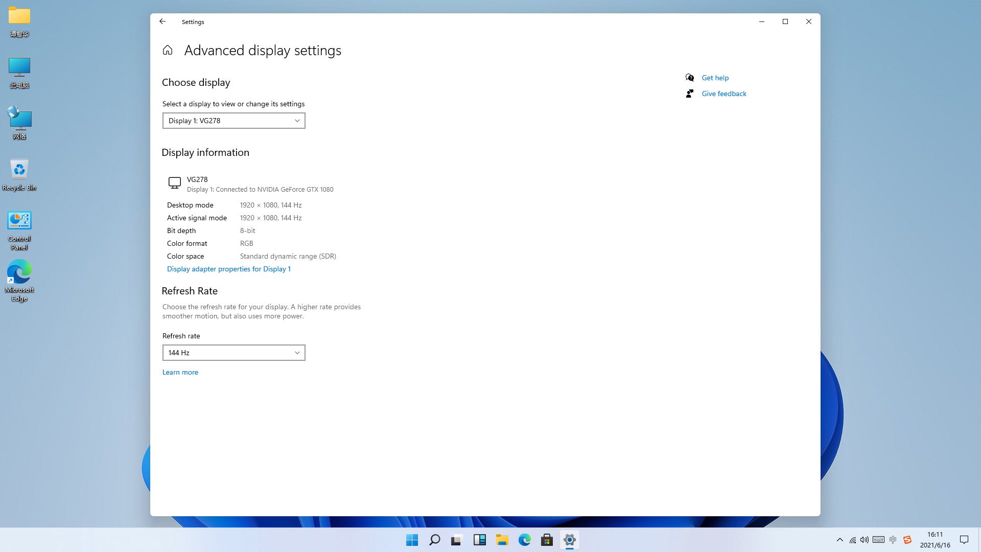 10.显示器设置依然支持高刷新率。