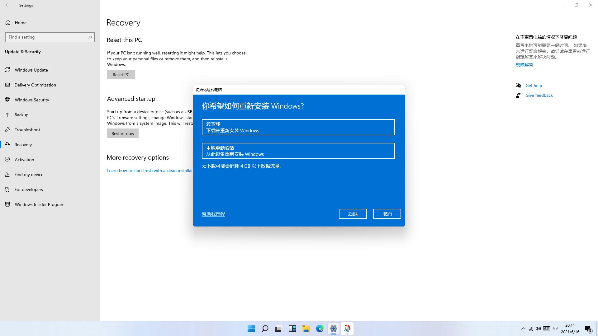 7.新系统支持恢复出厂设置功能。