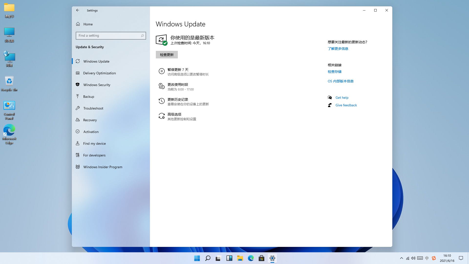 8.系统检查更新,自动安装硬件驱动。
