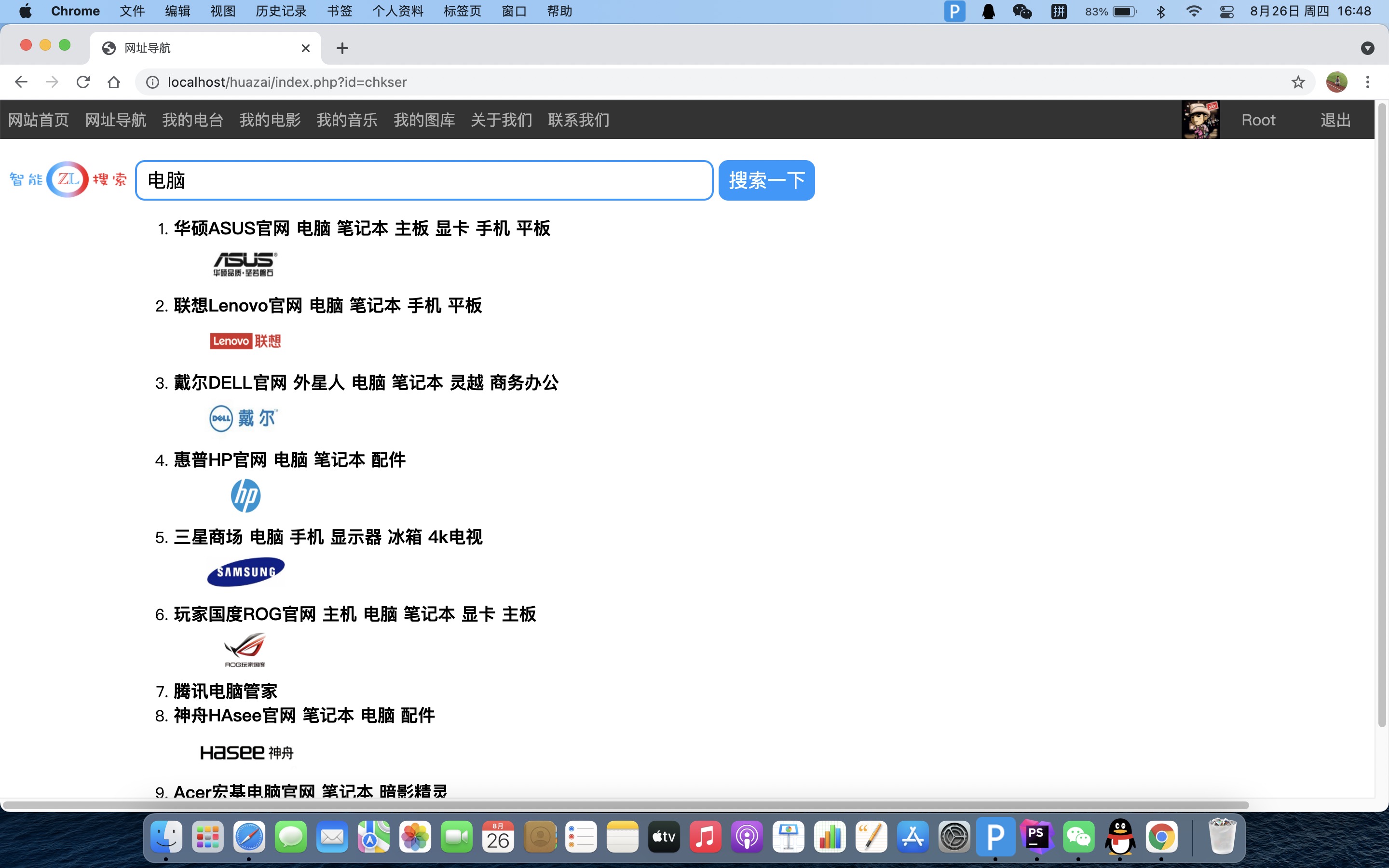 输入“电脑”关键字,正确查询数据库name字段里含有“电脑”的结果,并以文字和图片以列表形式展示。