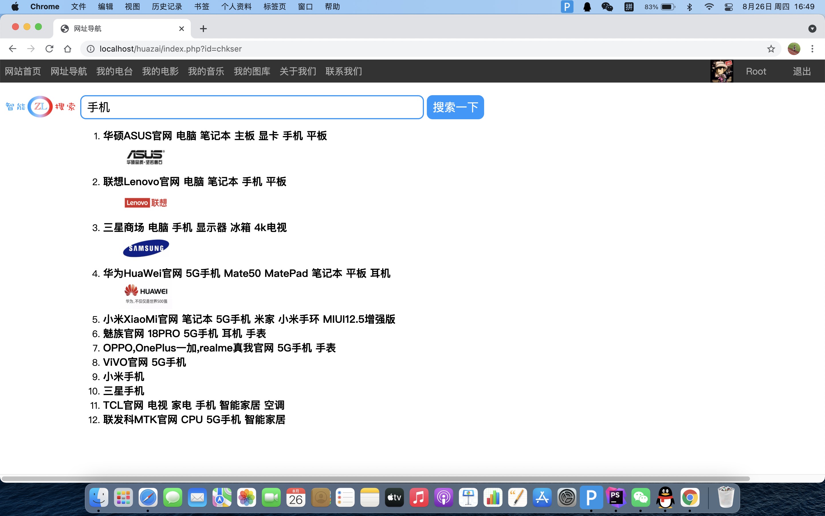 测试关键字“手机”,正确展示结果。