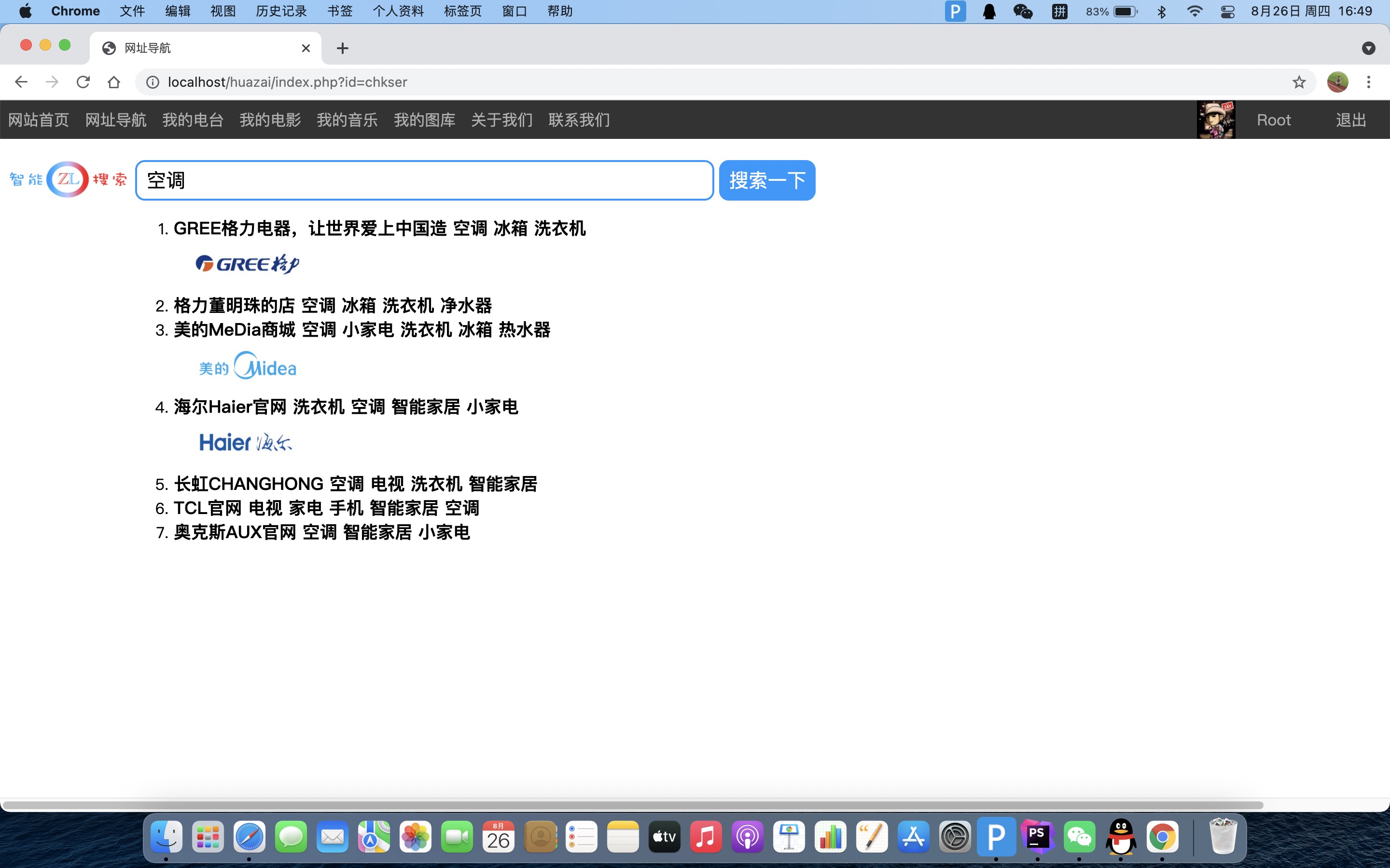 测试关键字“空调”,正确展示结果。