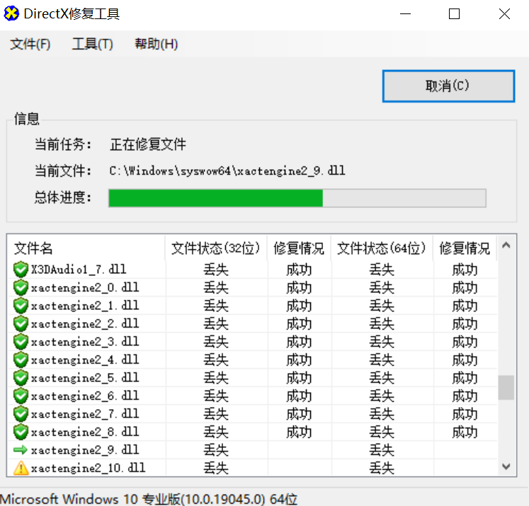 下载完成后,解压,运行DirectX_Repair.exe