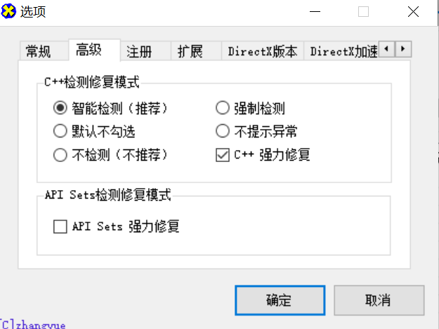 高级中勾选上C++强力修复,点击确定