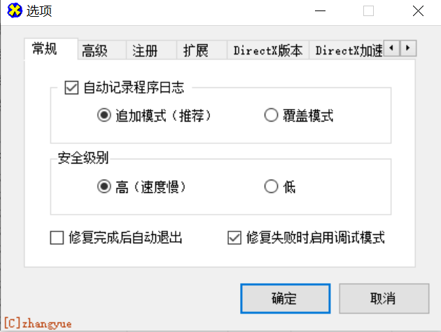 常规中,勾选上修复失败时启用调试模式,点击确定