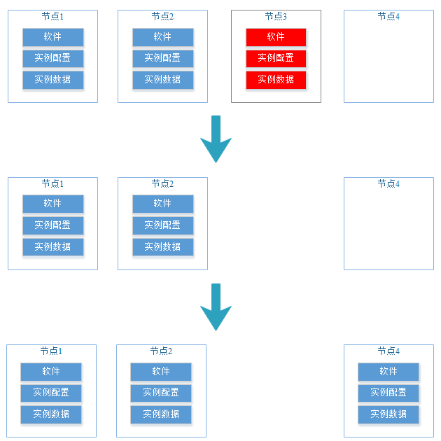 节点修复主要处理更加复杂的故障场景,该故障场景主要是指某个机器(或多台机器)发生整机故障,如CPU、内存故障,OS系统损坏导致的机器无法启动。