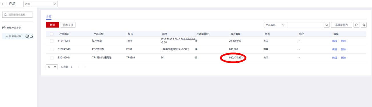 等待操作执行完成后,在“产品”主数据功能,查看产品的现有量是否增加: