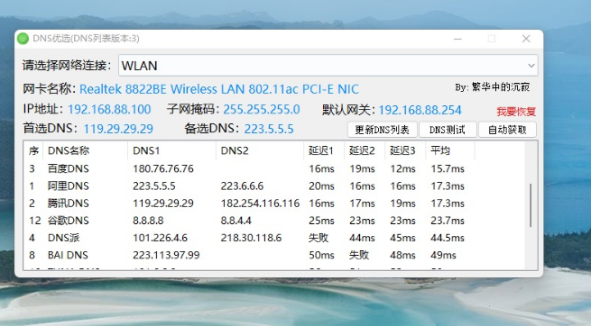 下面,先来看看国内可用公共dns的详细信息。下面通过方案1(系统设置)/方案2(路由器设置)dns服务器地址来验证对网站请求响应的速率。