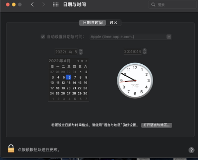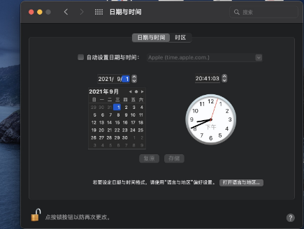 9.在MacOS系统下,在设置/日期与时间/修改回自动设置日期和时间。