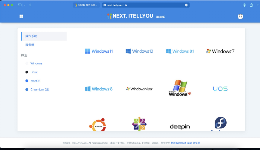 7.也可以通过msdn我告诉你官网"https://next.itellyou.cn/Original/"下载各个系统版本的镜像。