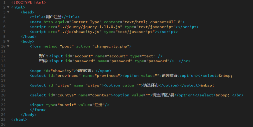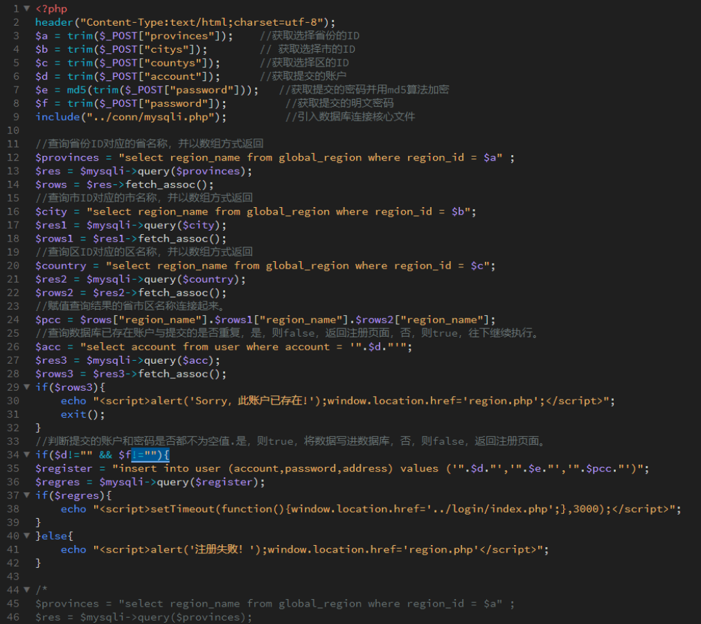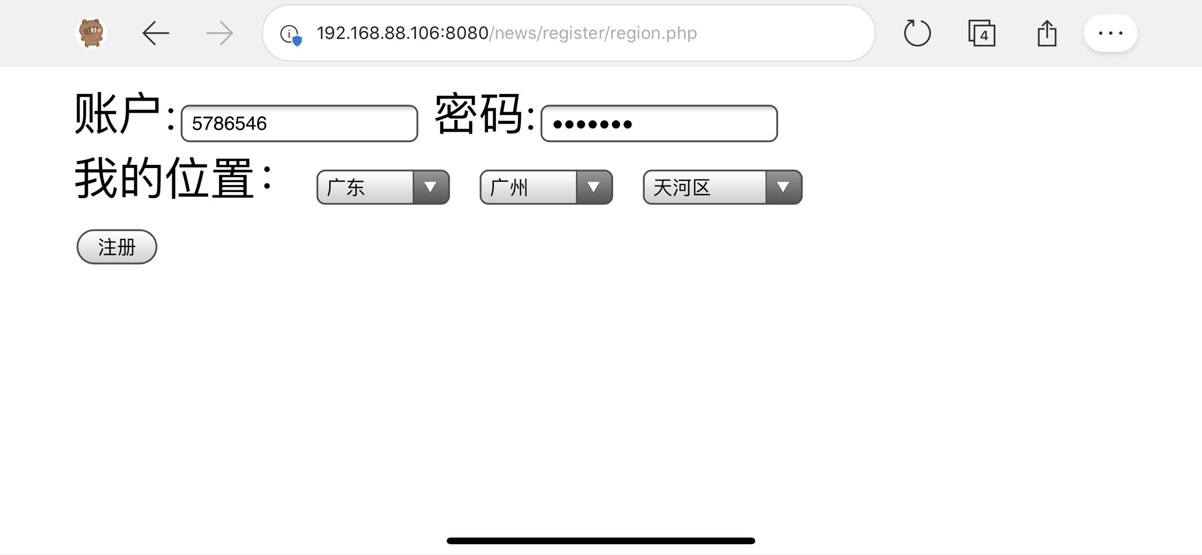 到此,本实例考虑到演示简单化,选取账户,密码还有省市区信息作为实验验证。当然,实际的用户注册信息远不止这些,欢迎各位加以补充和完善。