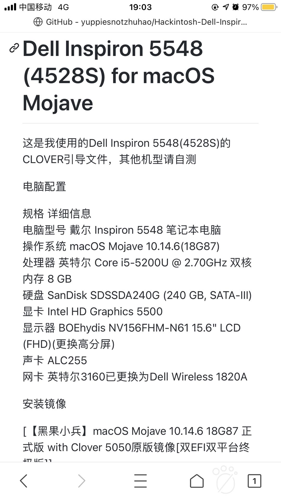 打开“黑果小兵官网”.找到适合笔记本/台式机的EFI引导文件。小编以戴尔灵越5548为例进行后续一系列演示。