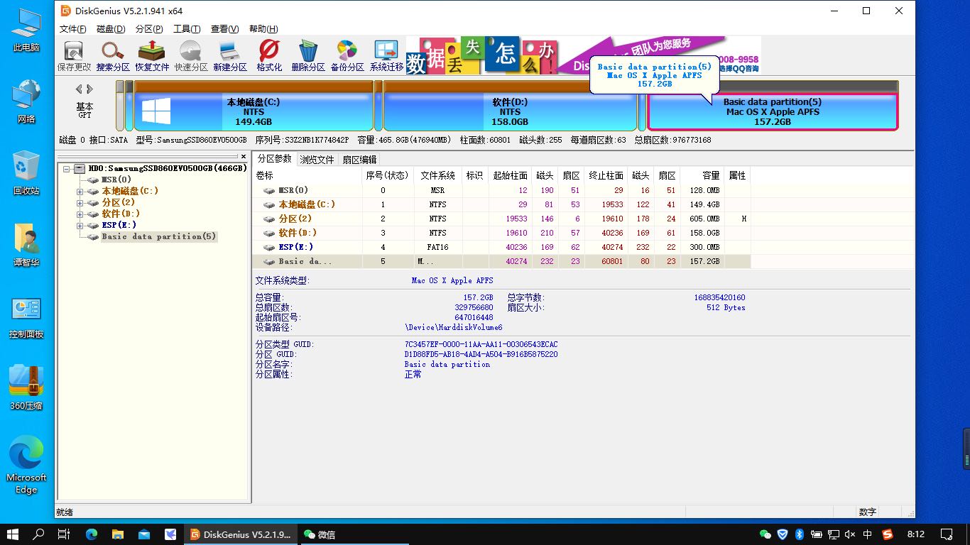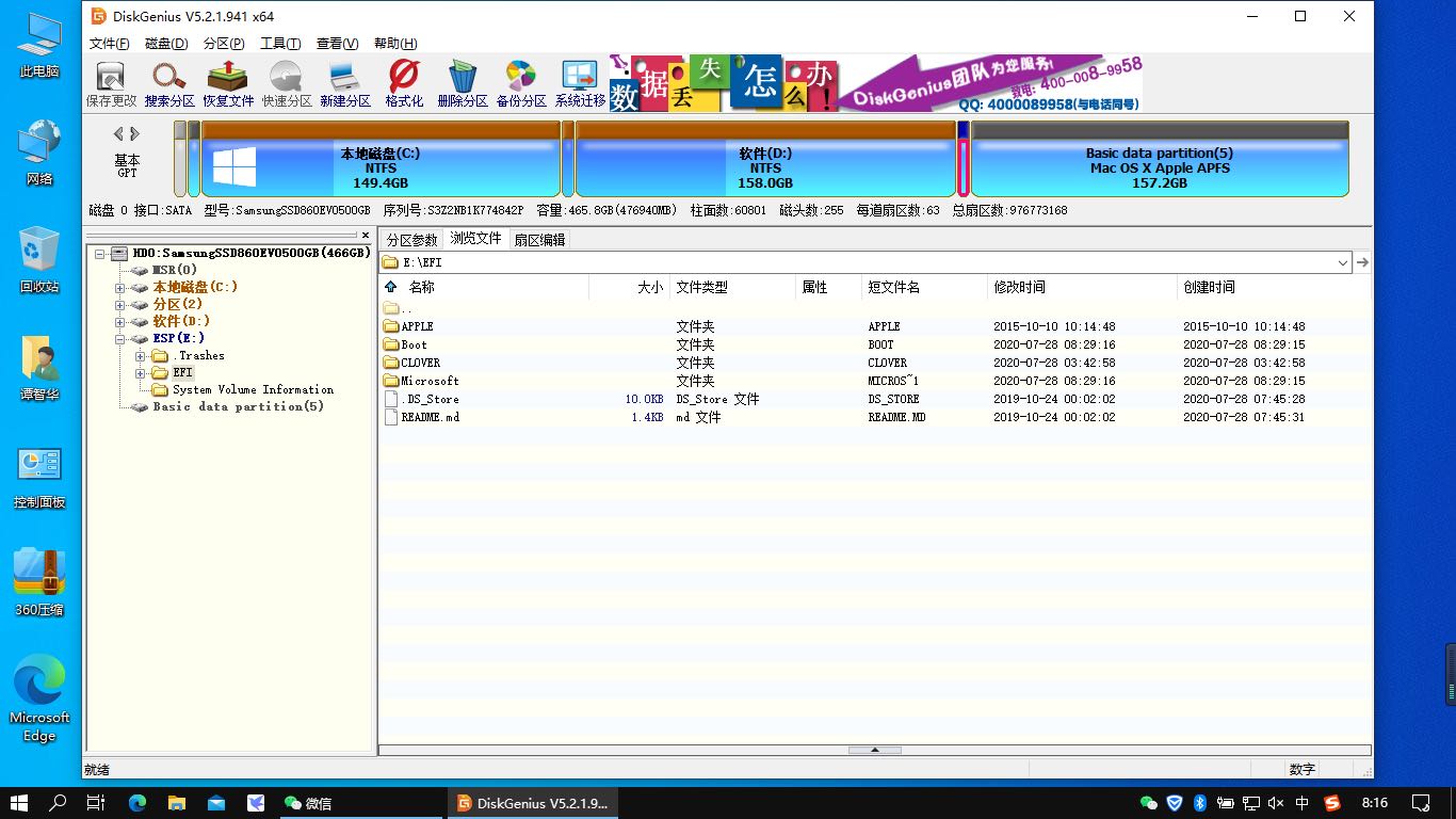 回到windows系统,打开diskgenius磁盘分区工具,复制戴尔灵越5548的EFI到新建的300MB新ESP分区中。