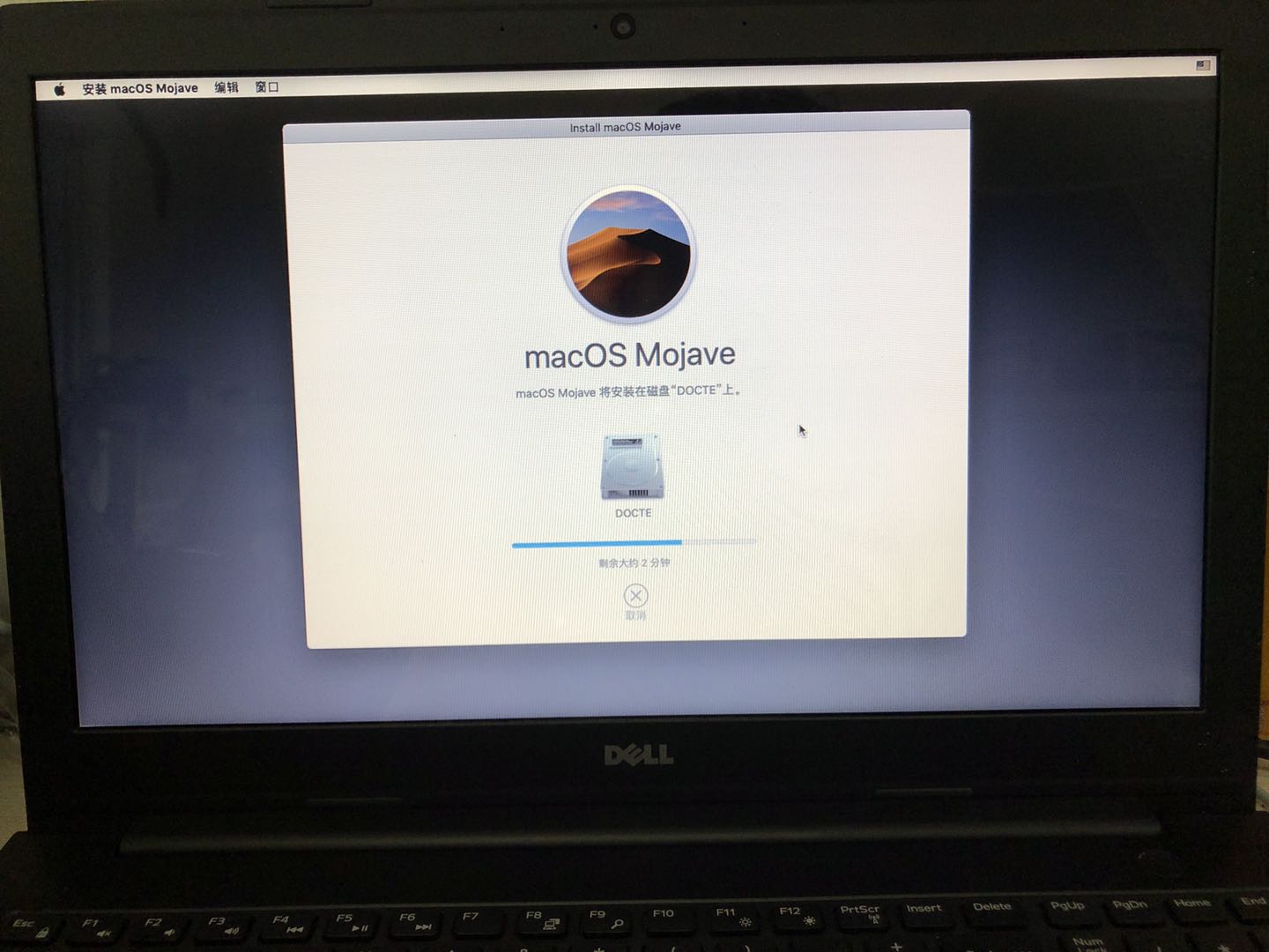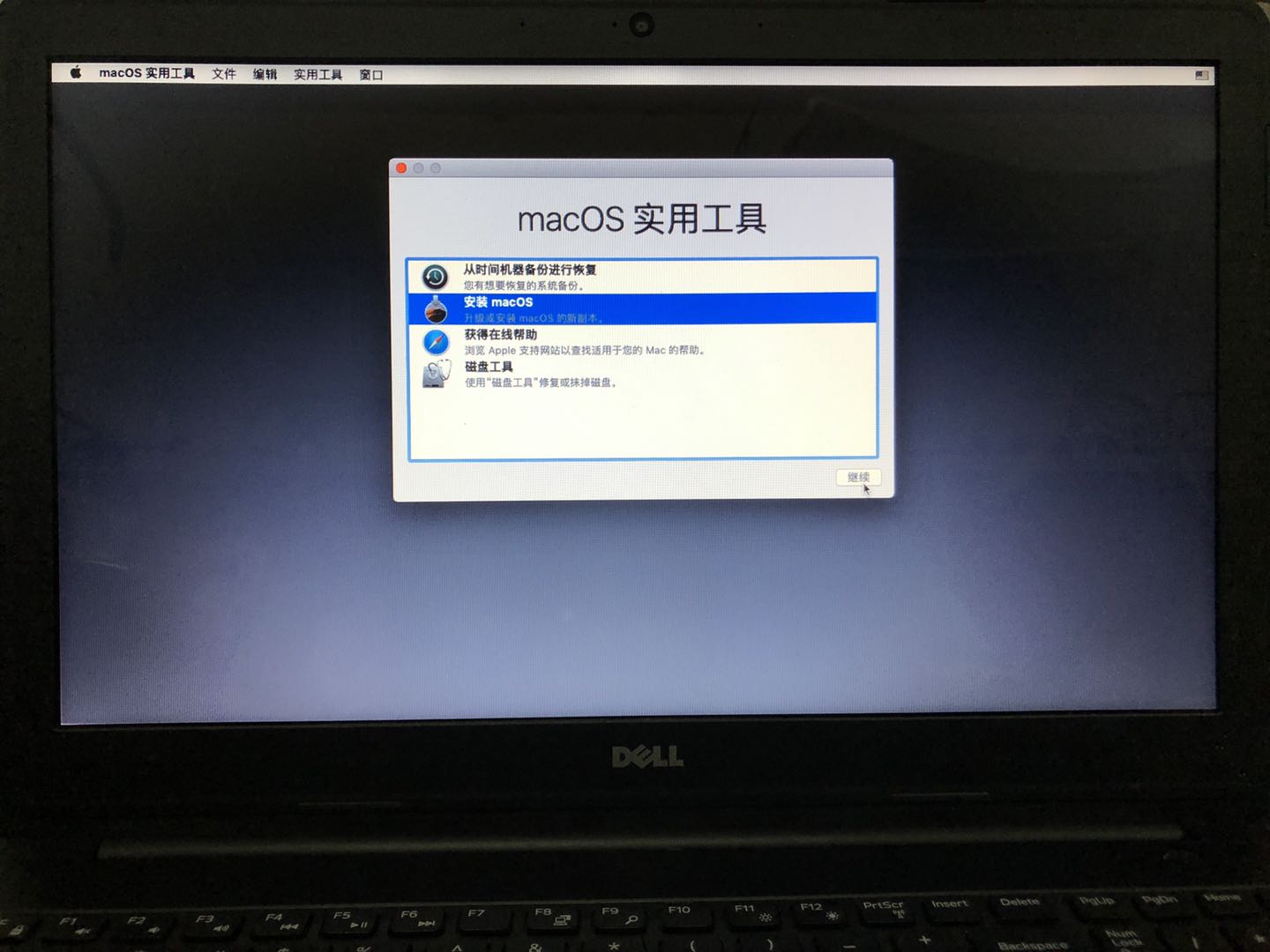 关闭磁盘工具,开始安装macOS系统。