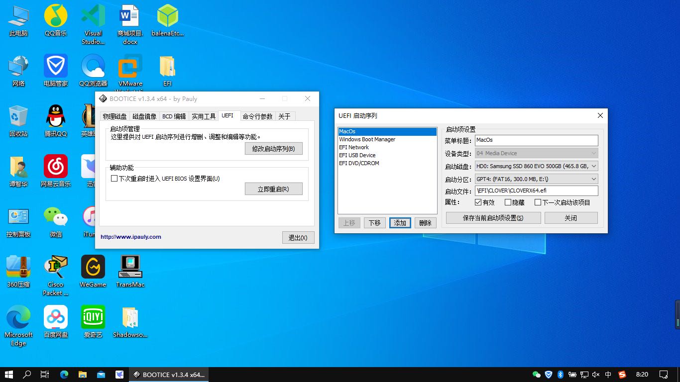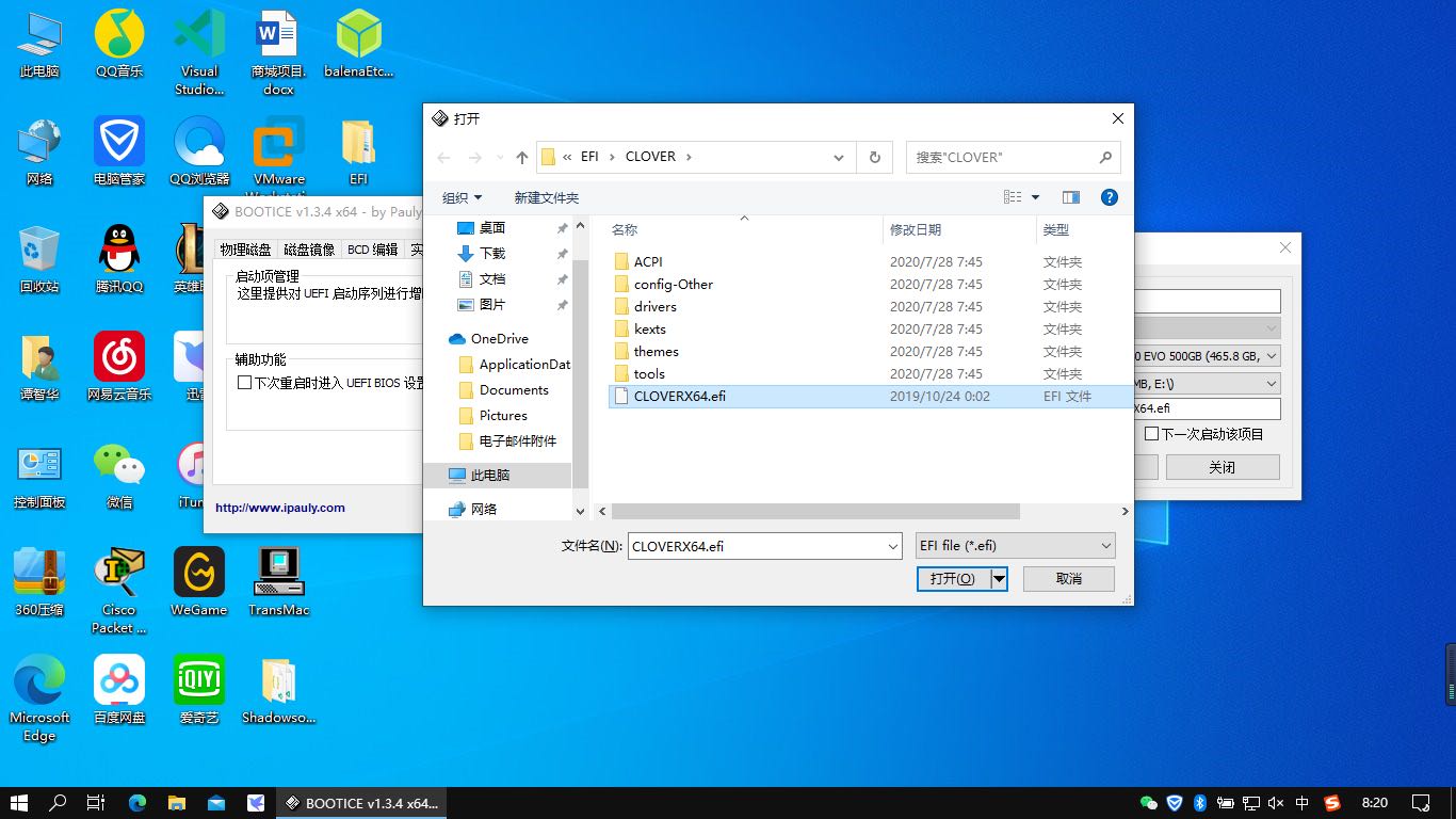 打开Bootice引导启动工具,添加一个新的引导,选择300MBESP分区下的EFI/CLOVER/CLOVERX64.efi文件。