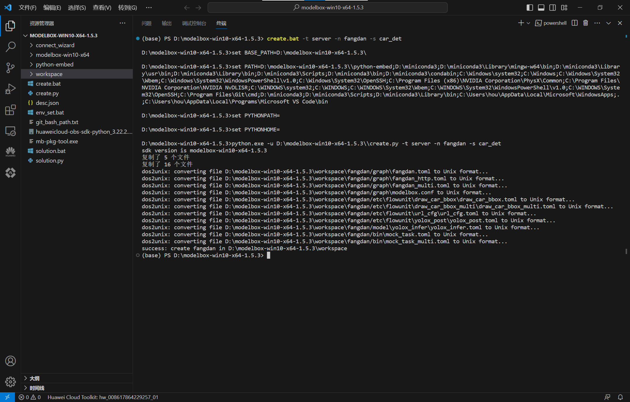 在ModelBox sdk目录下使用create.bat创建fangdan工程