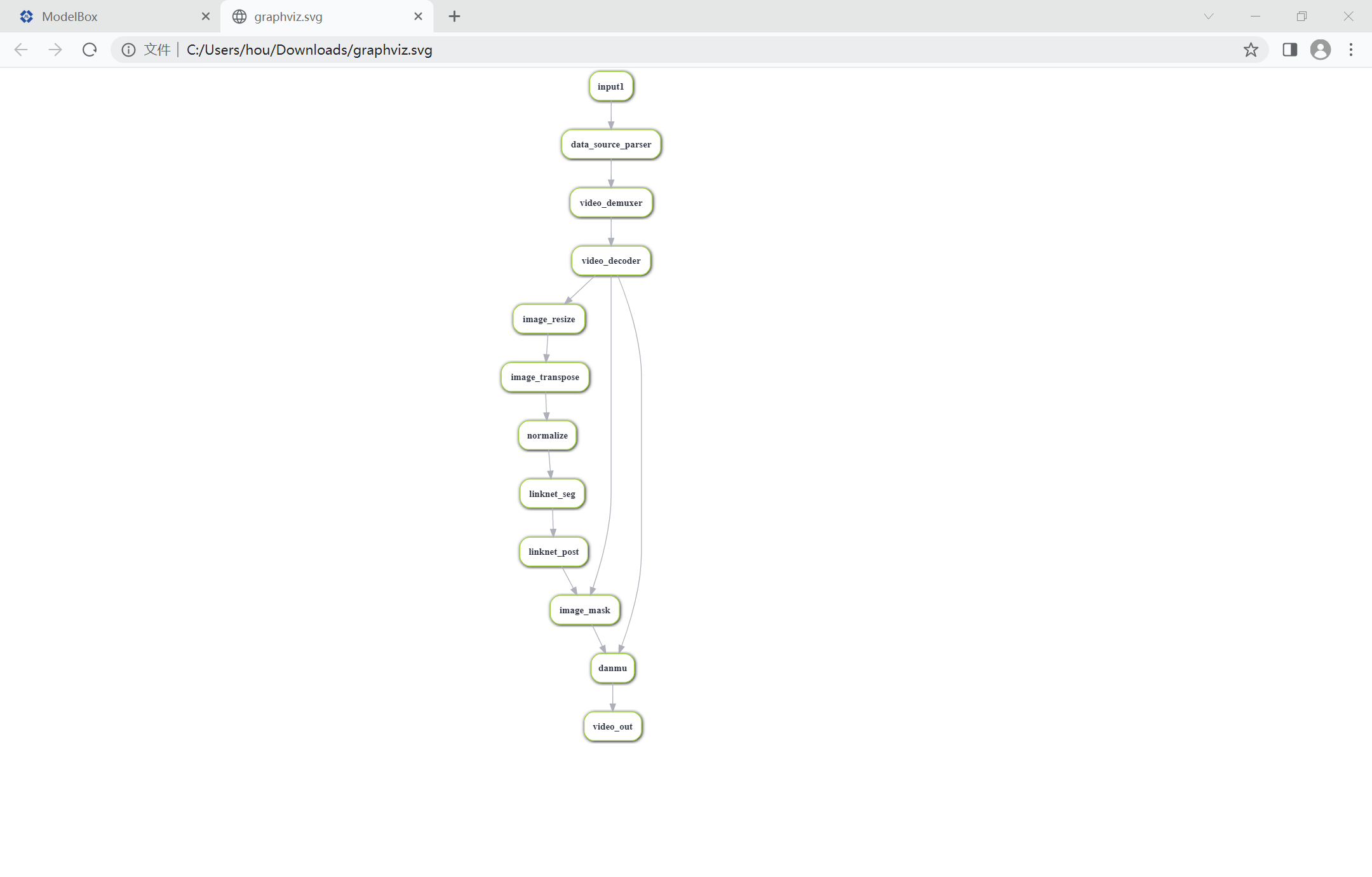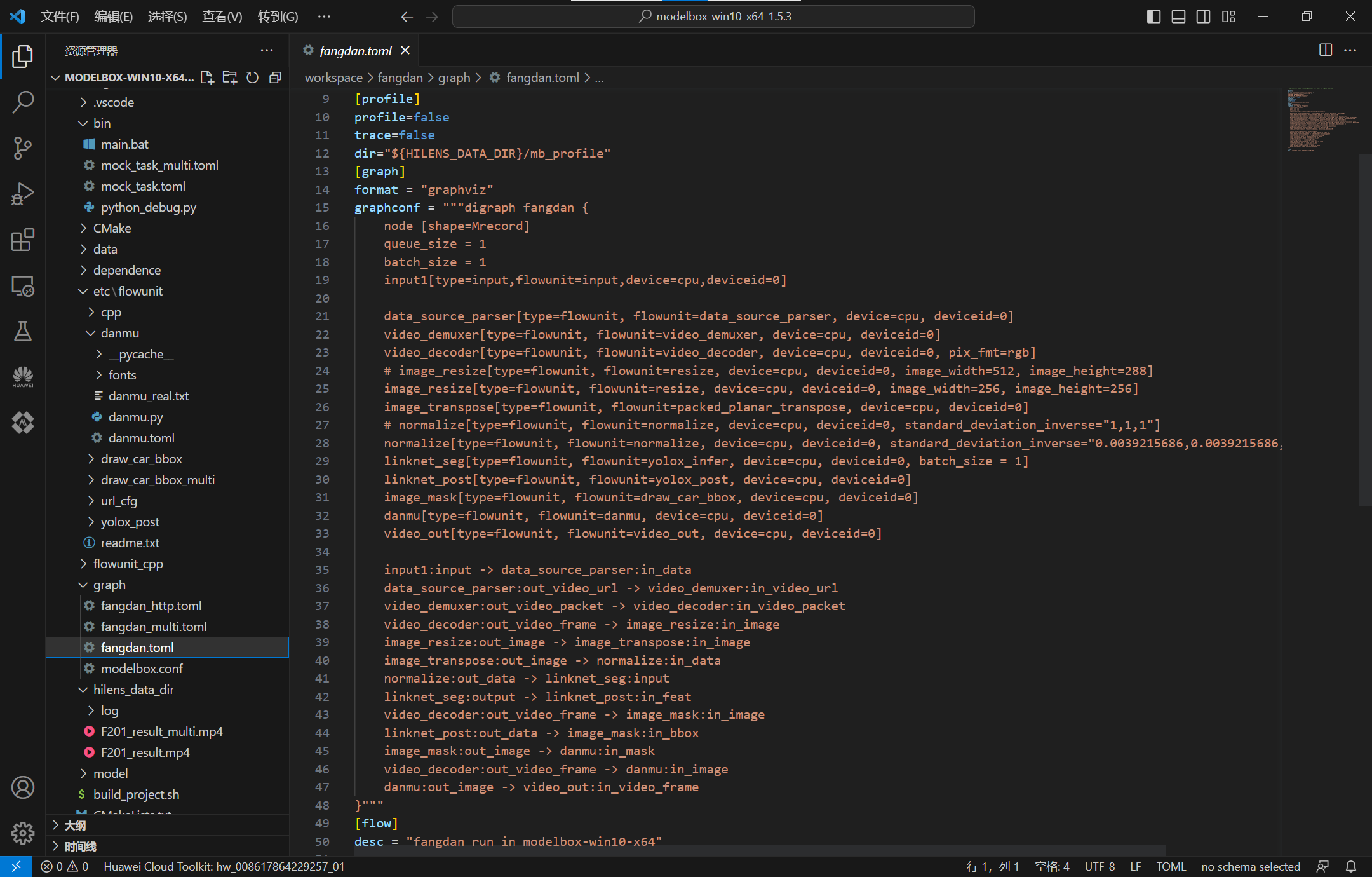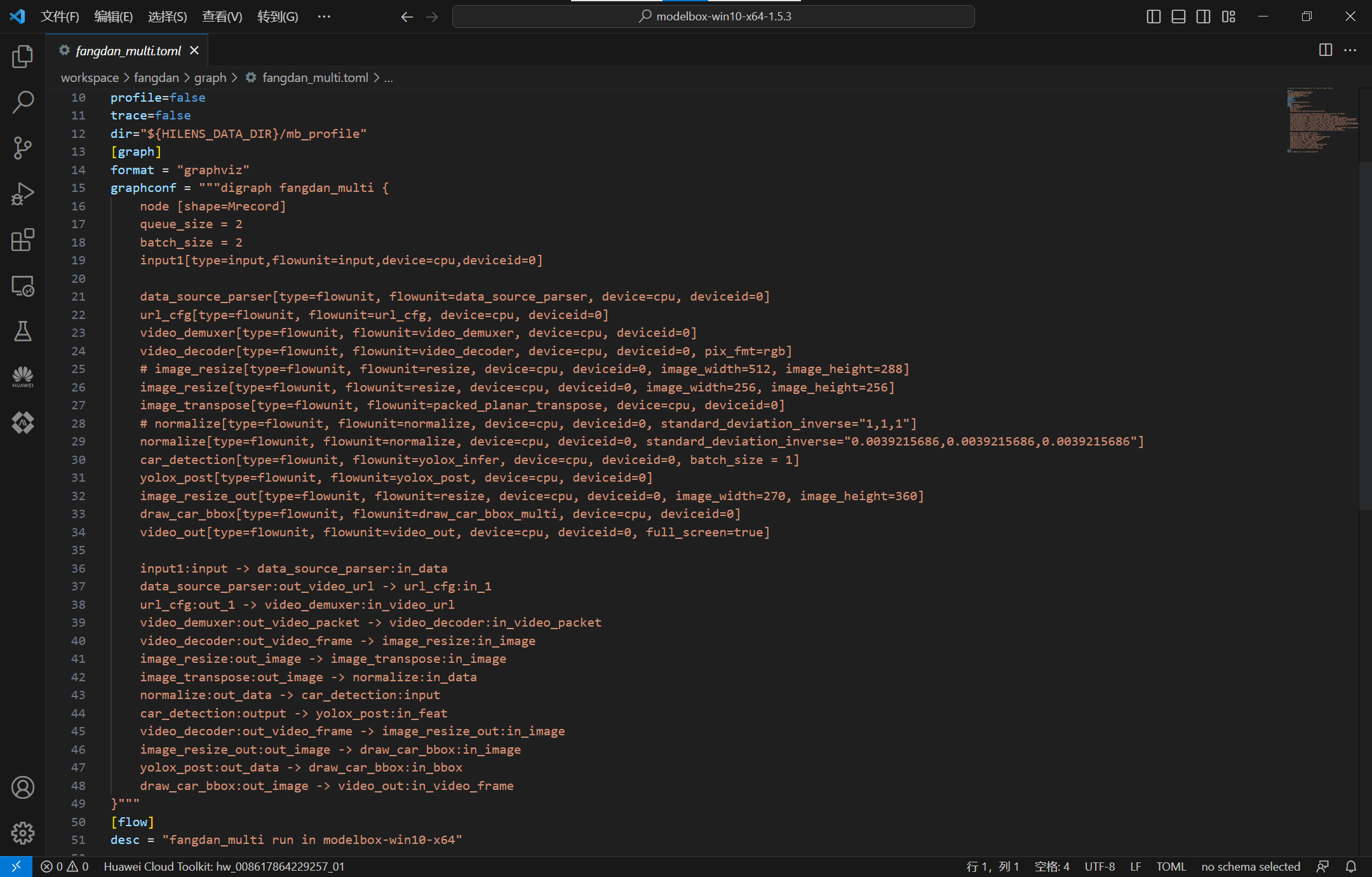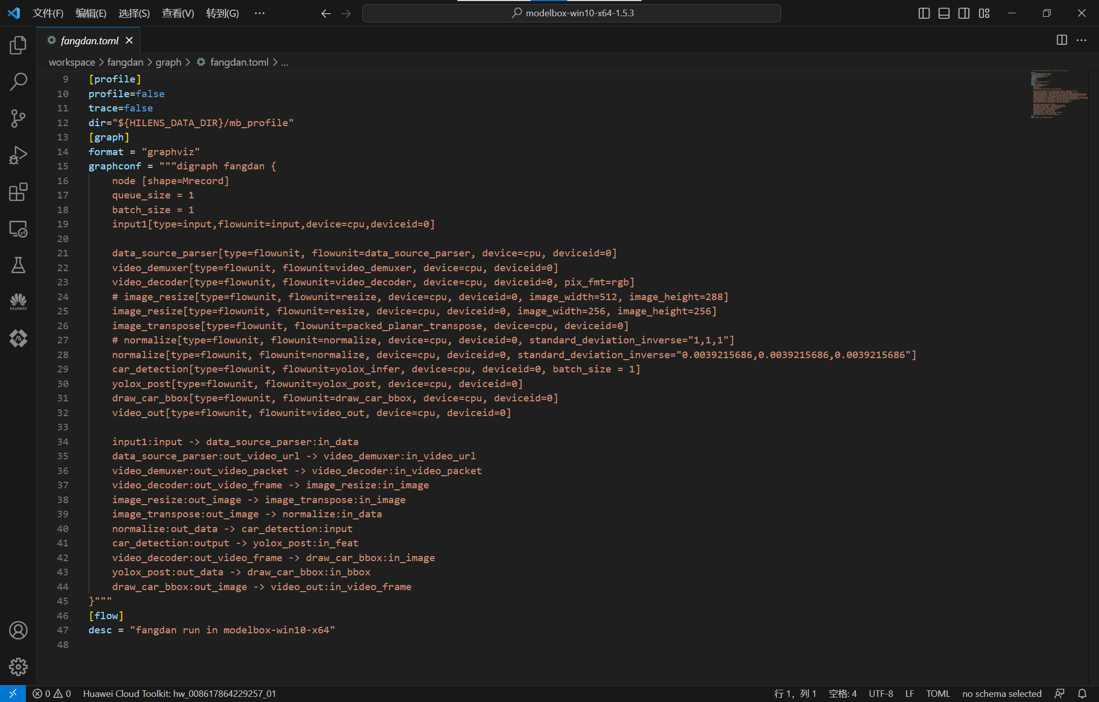 ModelBox提供了可视化图编排工具:Editor,使用./create.bat -t editor开启图编排服务,可以查看项目的流程图:
