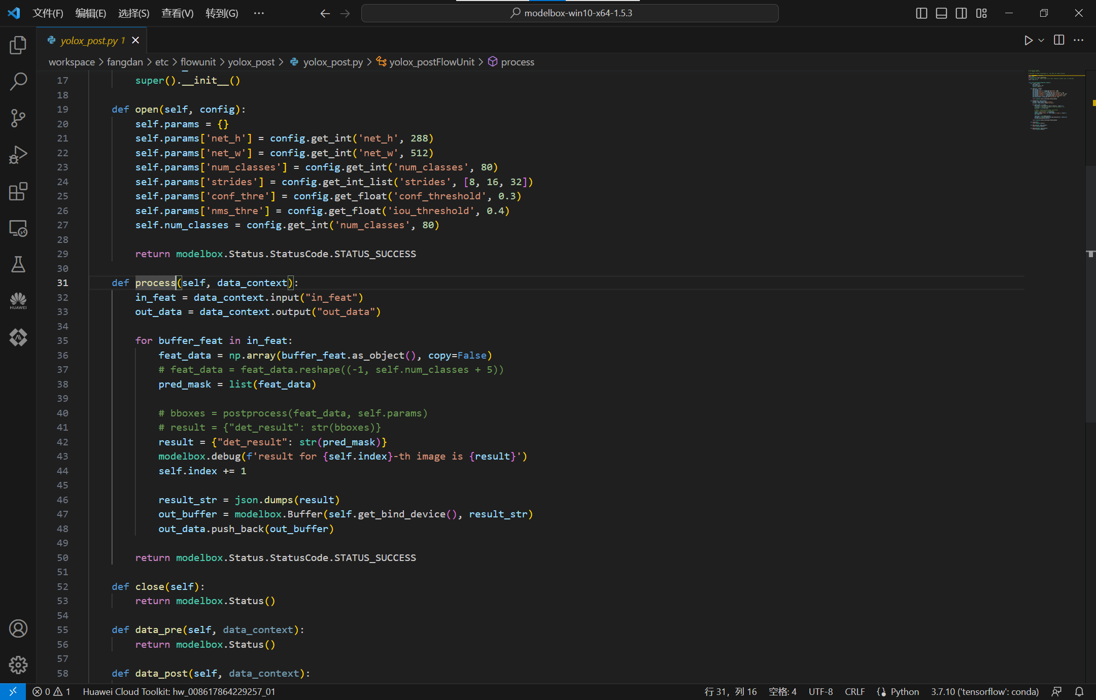 修改模型后处理功能单元process函数: