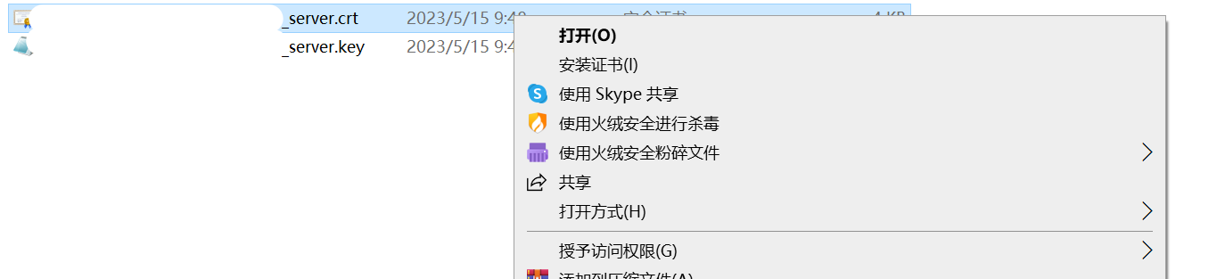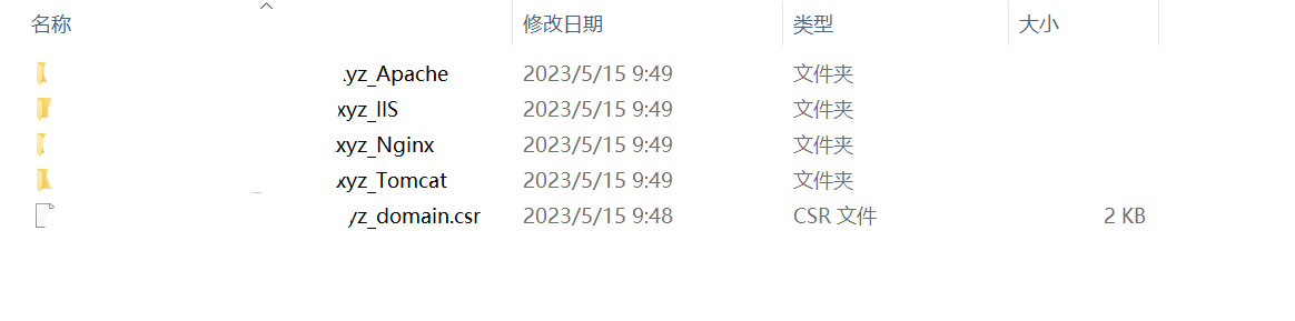 文件夹中会有两个文件,一个为.crt后缀一个为.key后缀,这两个文件中的内容一会需要进行复制粘贴,保持文件夹打开。