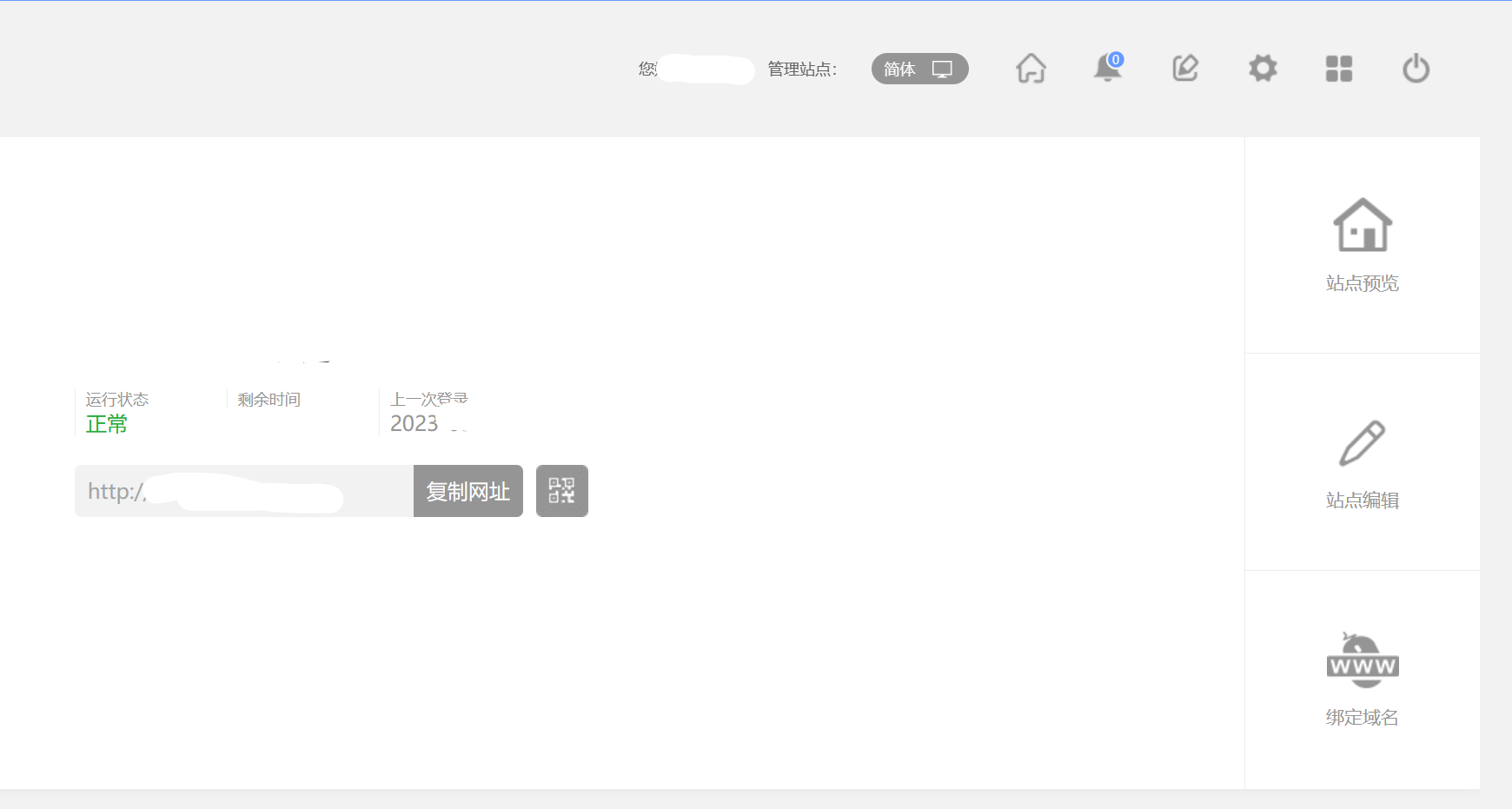 在控制台中,左侧选择云速建站