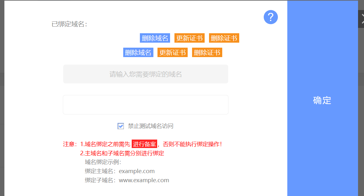 点击右侧的绑定域名