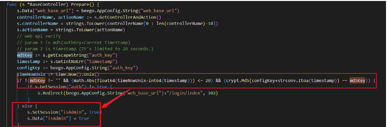 漏洞位置位于web\controllers\base.go