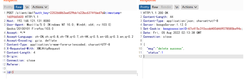 比如这里新建了一个客户端id值为3,我们只需发包即可进行删除