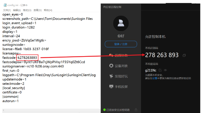 便携版:C:\ProgramData\Oray\SunloginClient\config.ini