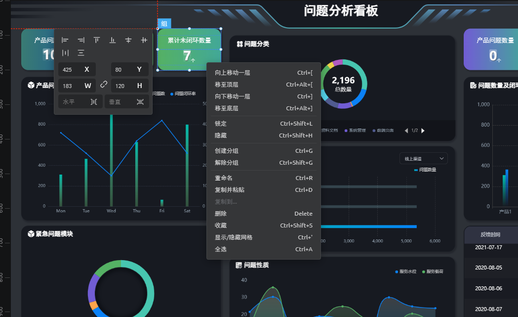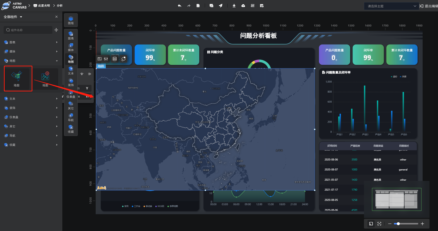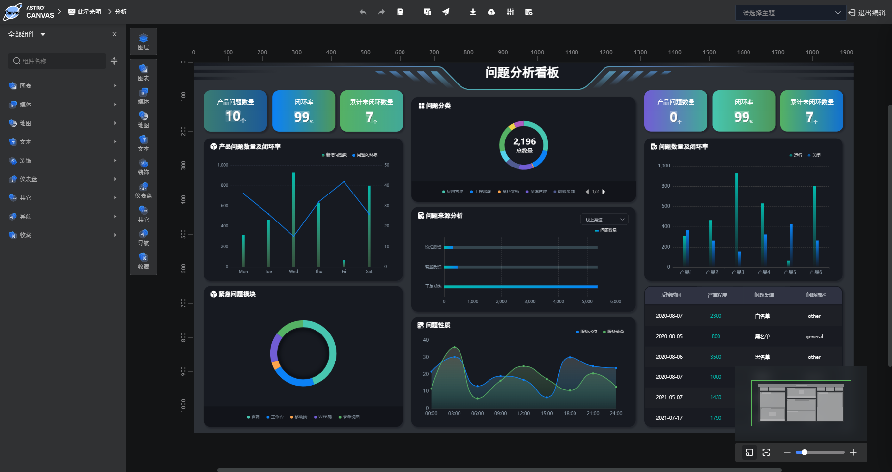 快速上手:Astro无代码大屏提供了丰富的可视化组件和模板,用户只需要简单的拖拽和配置就可以快速创建一个漂亮的数据可视化大屏。
