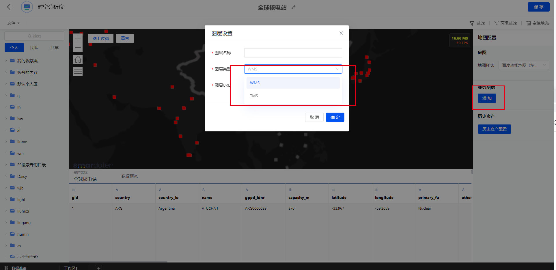1.支持WMS和TMS的图层类型设置