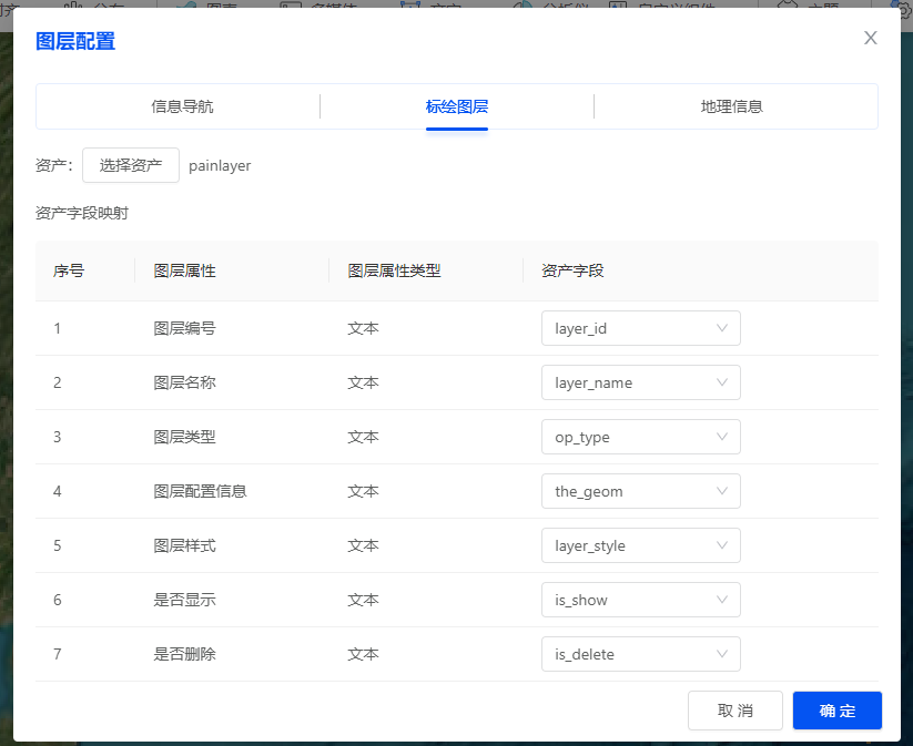 3. 配置交互:在GIS地图分析应用上,点位与图层的数据联动配置,用于配置不同图层下的点位展示;通过点位的数据驱动事件的生成,事件驱动图层交互,实现GIS地图分析的动态交互及可视化分析。