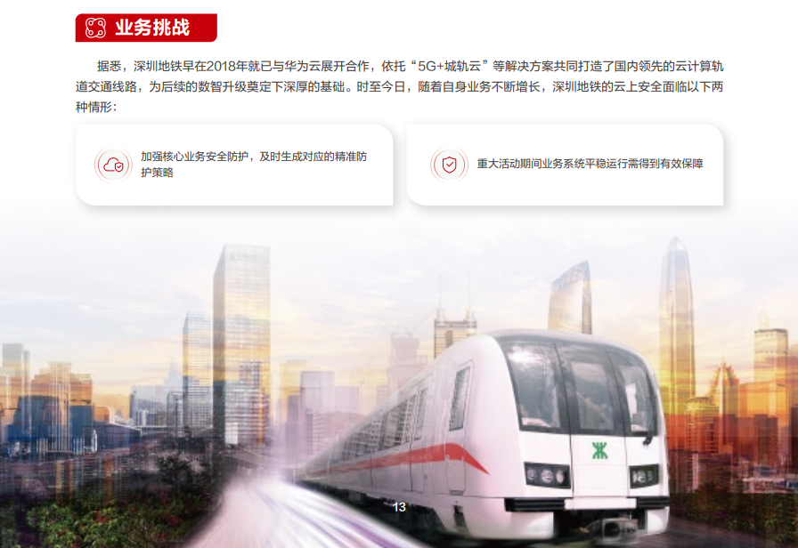 未来,华为云将继续为深圳地铁提供可信、简单、智能的云安全平台和服务,共同打造智慧、高效的出行方式。