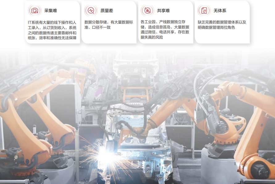 某制造企业亟需通过数字化手段感知企业实时生产经营情况,支撑企业快速决策,提升企业营运效率。该企业的数据管理面临多种挑战: