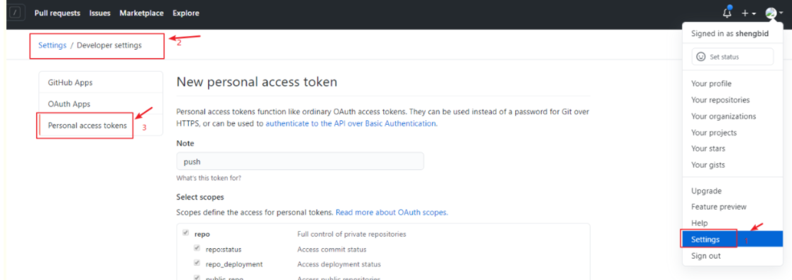 解决方法:在网页上登陆你自己的githup账号,点击右上角头像--> setting --> Developer settings --> Personal access tokens页面