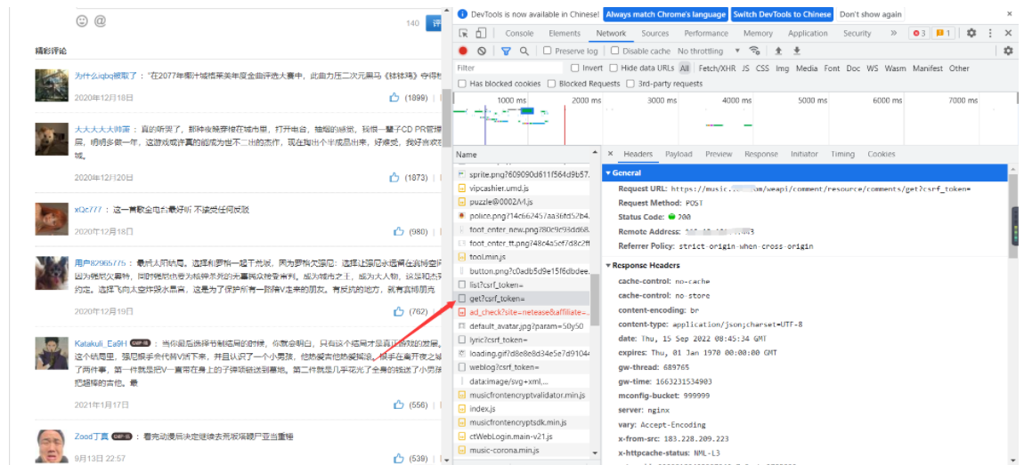 这次举例调试是某音乐的评论请求