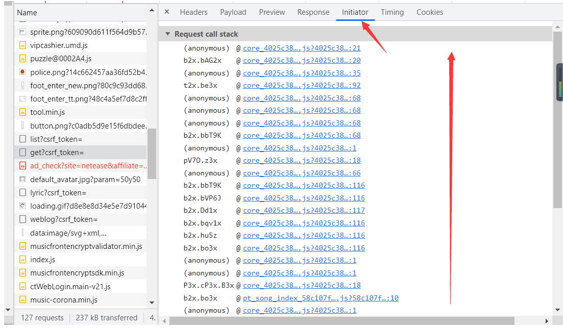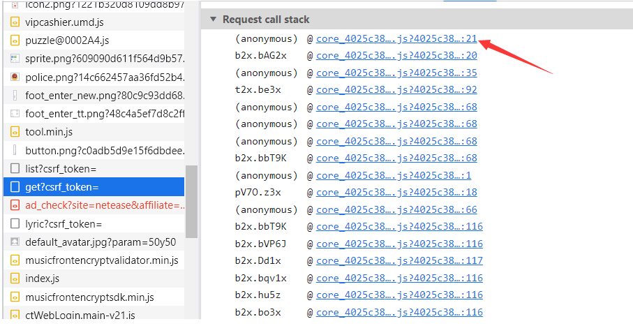 这里相当于这个请求的整个过程中所调用到的js的执行栈 重下往上 最先执行的在最下面