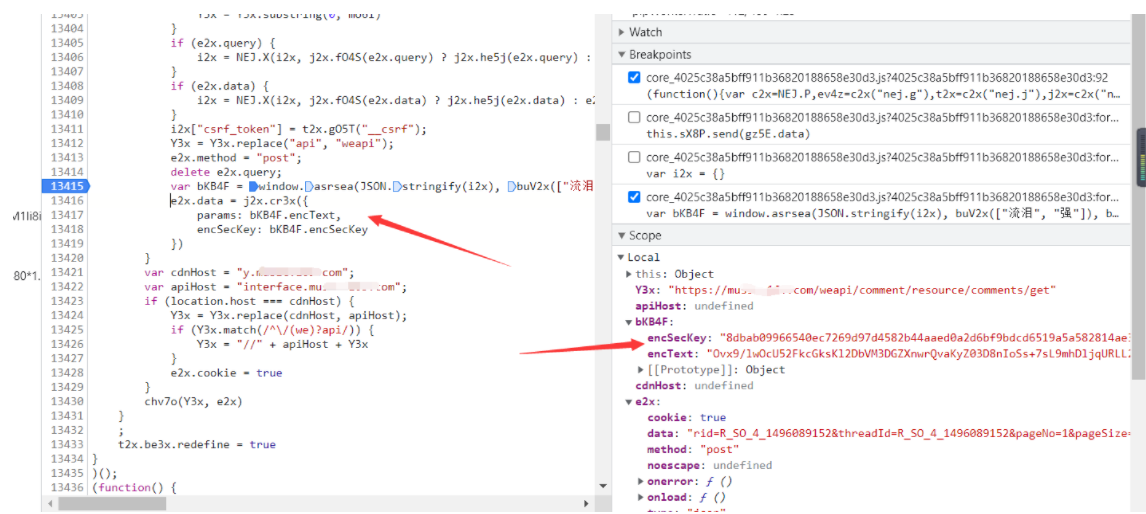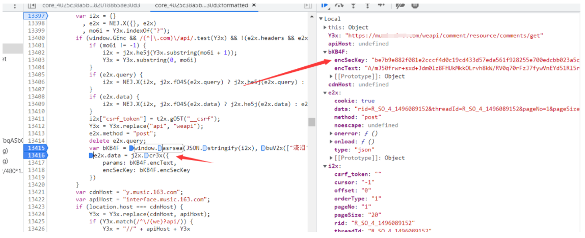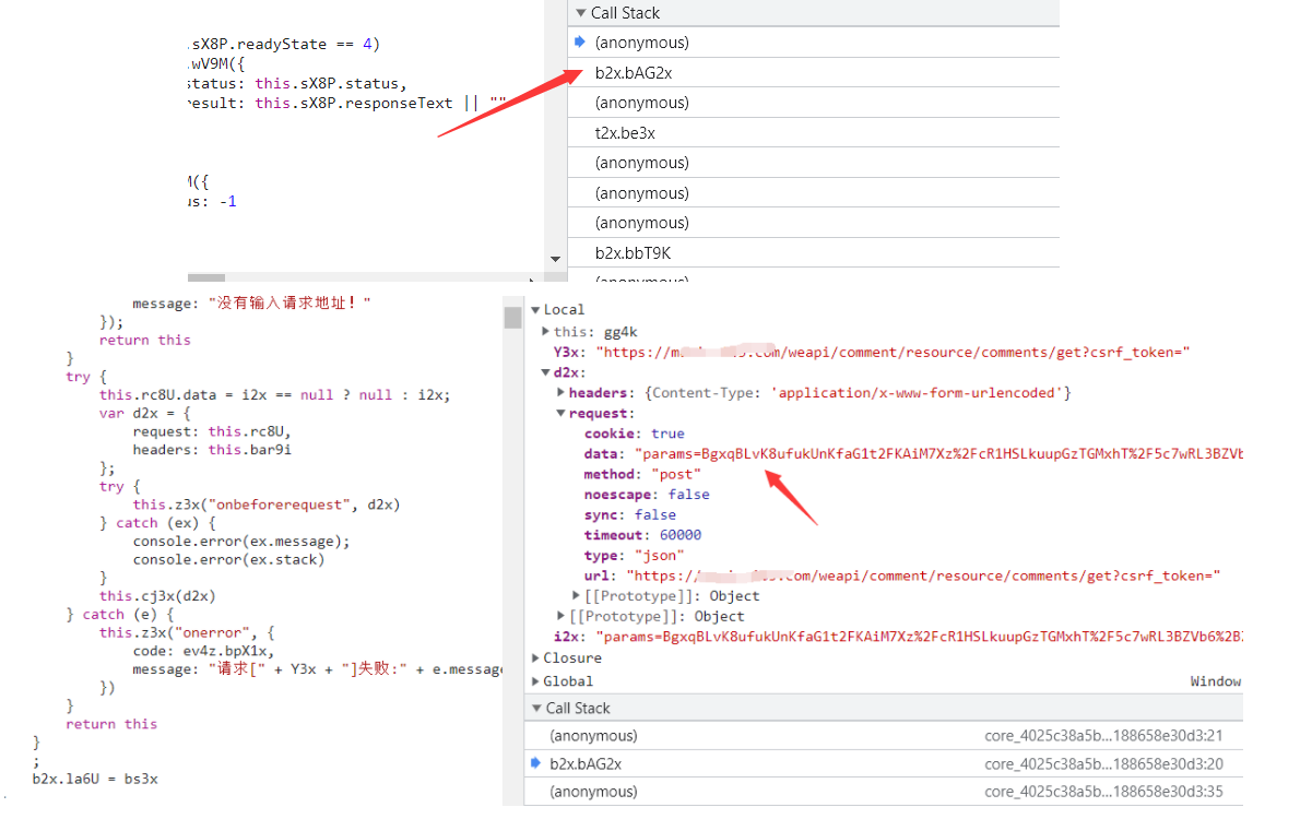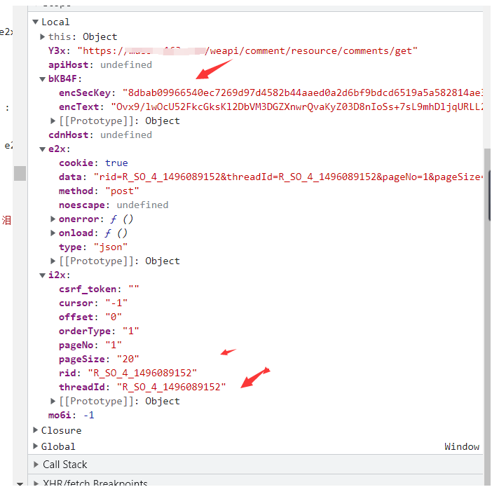因为我们之前在这里可以看到params拼接的就是encText 以及encSecKey拼接的encSecKey