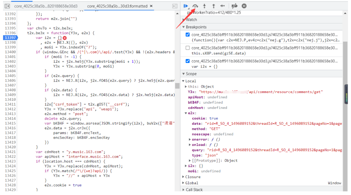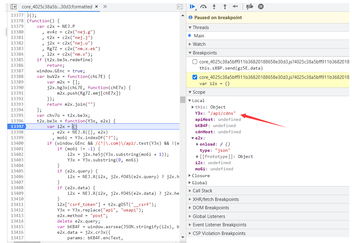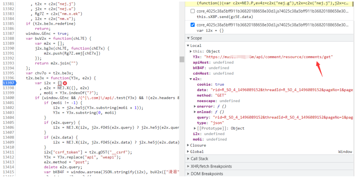 然后打开Scope里面的local 查看request里面的url 找到我们之前F12找到的那个URL